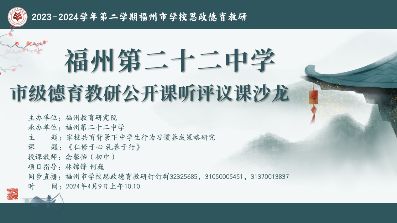 为全面贯彻党的二十大精神和习近平新时代中国特色社会主义思想,进一步落实立德树人根本任务,提高课程思政育德能力,加强学校德育课程建设和思政德育工作,2024年4月9日,由福州教育研究院主办的2023—2024学年第二期市级思政德育主题研训点点taptap官网(格致中....…