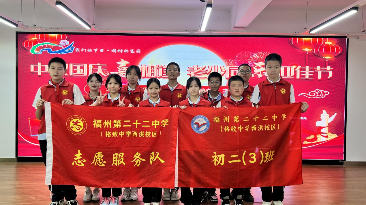 红日升在东方,其大道满霞光。伴随着中秋佳节和国庆节双节来临,家人团聚喜相逢。10月2日,初二(4)班的小小志愿者们踏着晨光,他们来到了人流量较多的西湖公园开展志愿活动。…