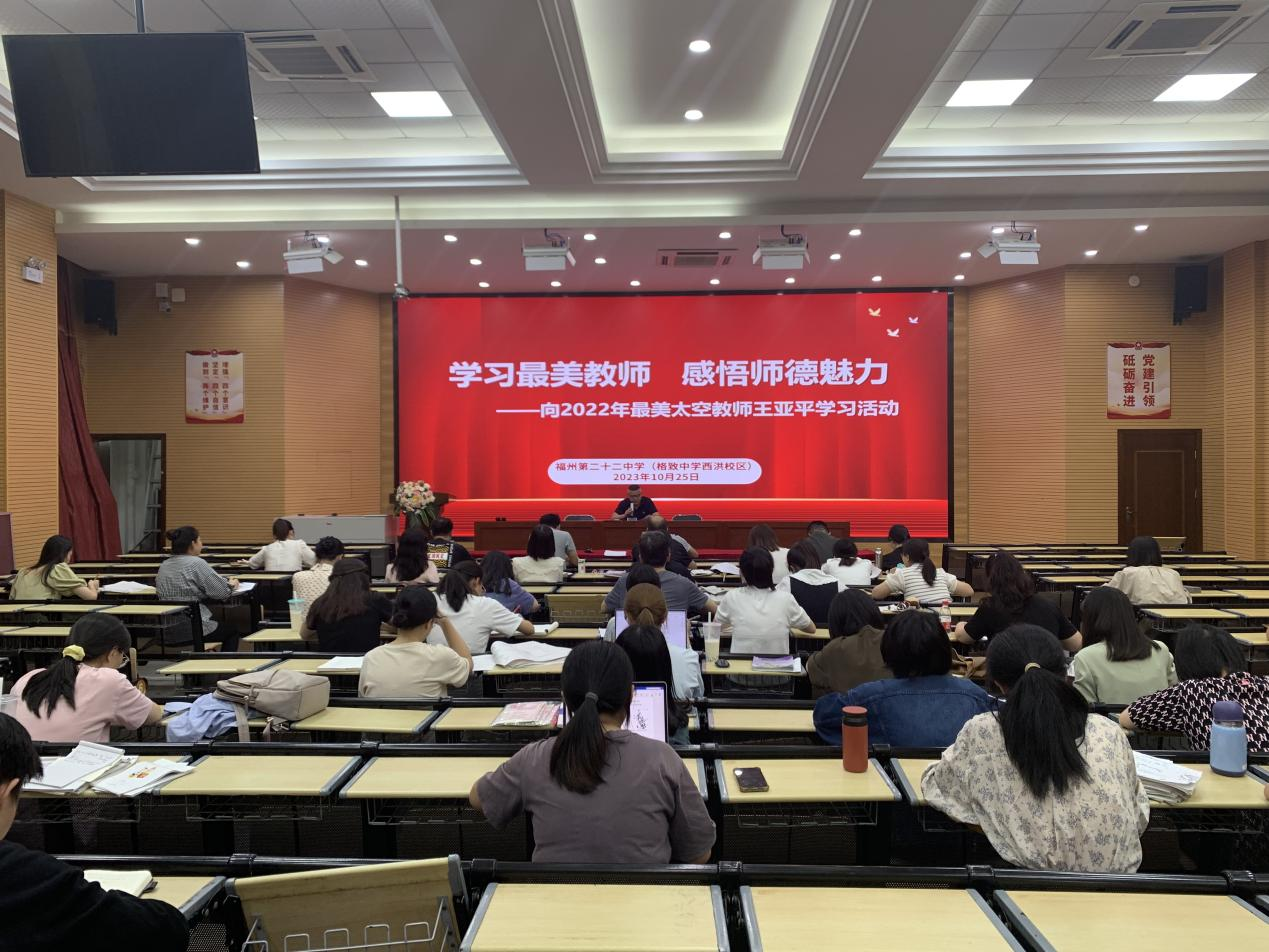 为全面贯彻党的二十大精神,深入贯彻落实习近平新时代中国特色社会主义思想,积极培育和践行社会主义核心价值观,强力推动教师师德师风建设,提高教师的师德修养,我校于10月25日下午开展以“学习最美教师,感悟师德魅力”为主题的向2022年最美太空教师王亚平老师学习....…