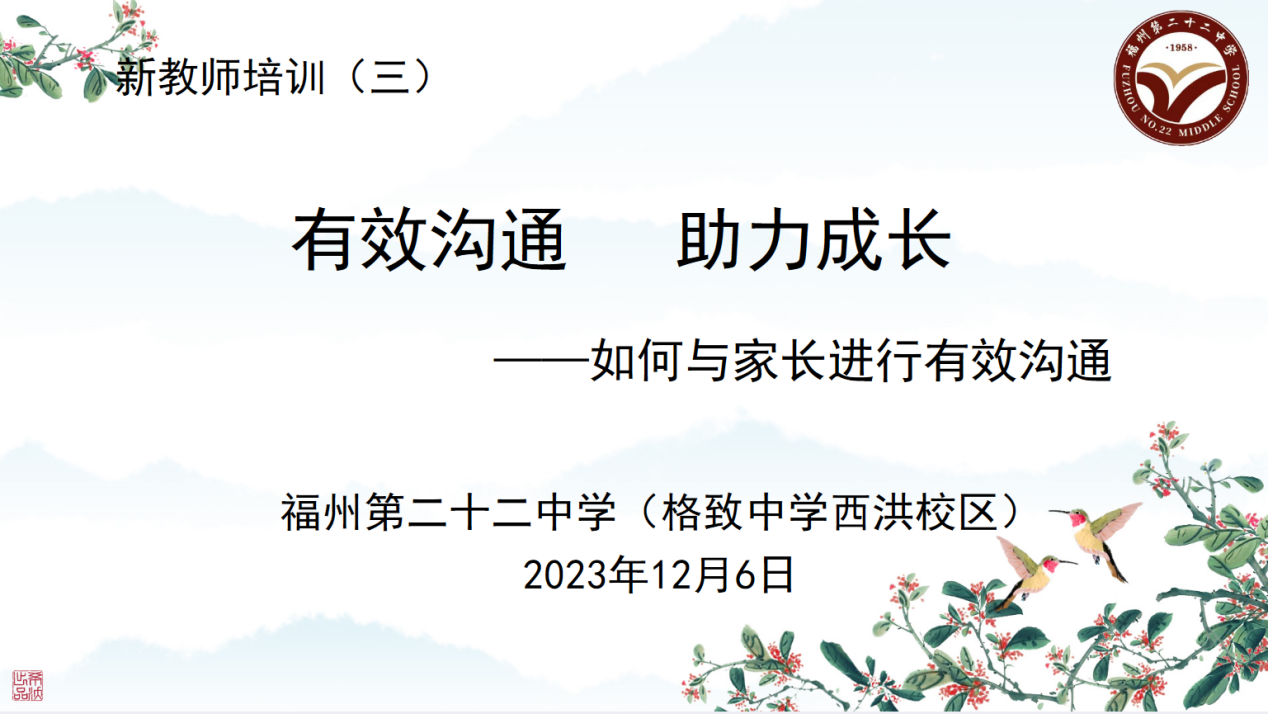 为帮助教师提升教学成长力,切实提高育人能力和水平,2023年12月20日下午,我校特邀请福州第十九中学张艳杰老师为全体教师开展以《做一个有自醒力的老师》为主题的教师能力提升讲座。…