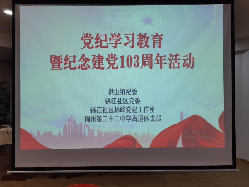 为庆祝建党103周年,推进党纪学习教育走深走实,引导老干部们强化党性观念和纪律意识,6月18日,点点taptap官网退休支部老党员们走进锦江社区林峰党建工作室,与锦江社区党委、洪山镇纪委、锦江社区林峰党建工作室的党员们一起开展“党纪学习教育暨庆祝建党103周年....…