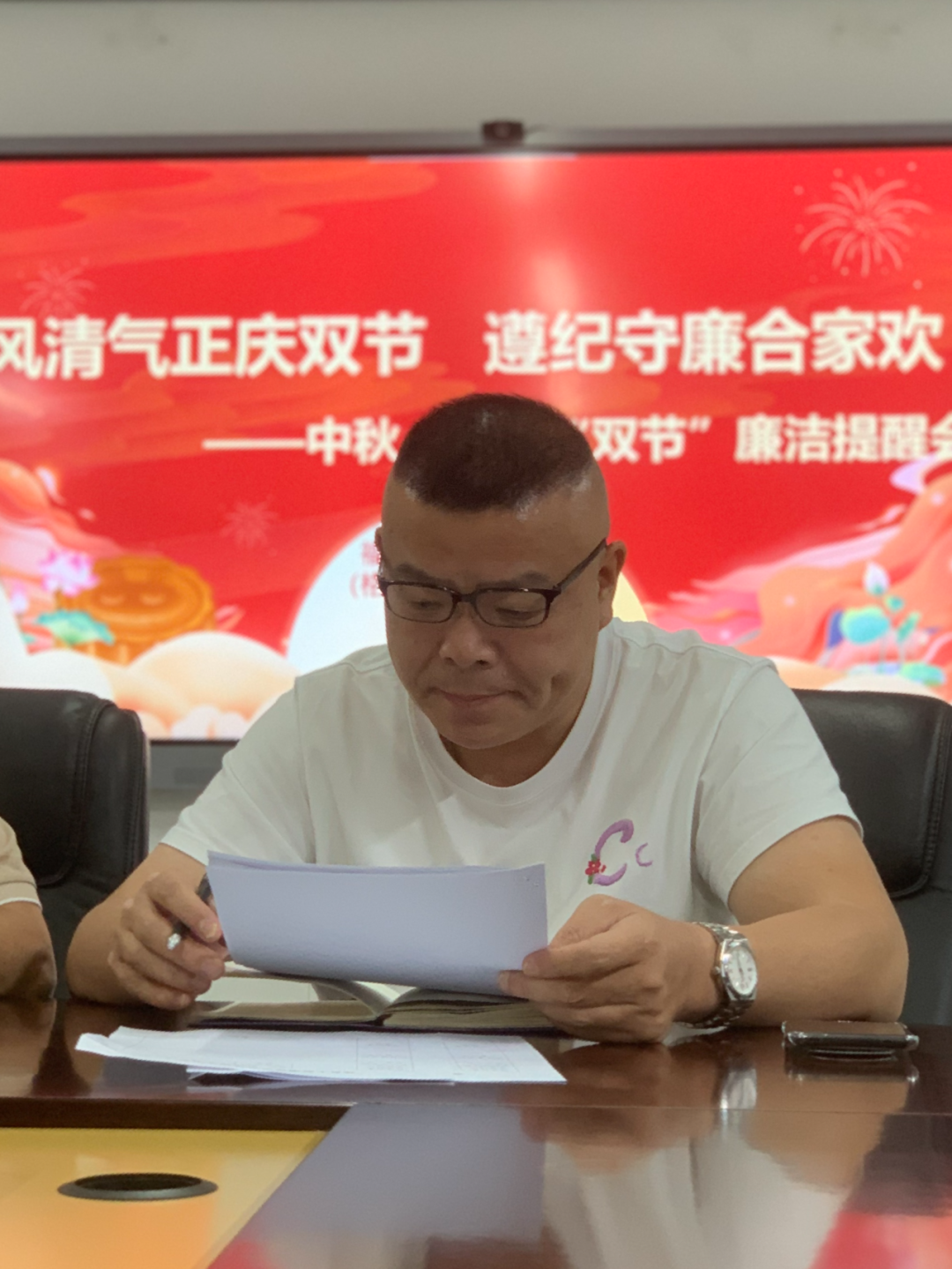 中秋佳节倍思“清”,欢度国庆慎微“廉”。2023年中秋国庆“双节”将至,为了进一步落实中央八项规定精神,弘扬风清气正、廉洁自律、为人师表的良好社会风气。9月25日上午,我校召开了以“风清气正庆双节 遵纪守廉合家欢”为主题的廉洁提醒会。