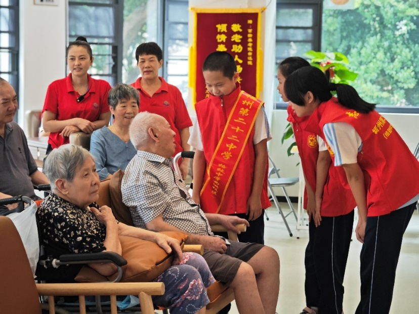 为了继承和发扬尊老爱幼的传统美德,点点taptap官网(格致中学西洪校区)初二2班的同学于9月16日上午9点开展了志愿服务活动。十几名由老师、家长、学生组成的志愿者走进台江区养新港街道百龄养老服务中心,为老人们送去关爱和温暖。