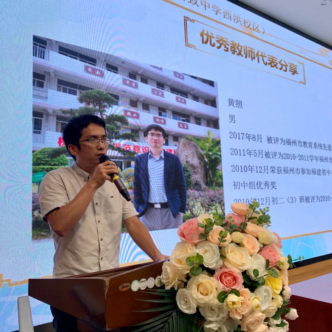 先进教育工作者代表教务处黄照主任讲述入职十六年的心路历程。教育之初心在于热爱,教育之永恒在于责任,榜样的力量,坚定的信仰,让教师节更富诗意。