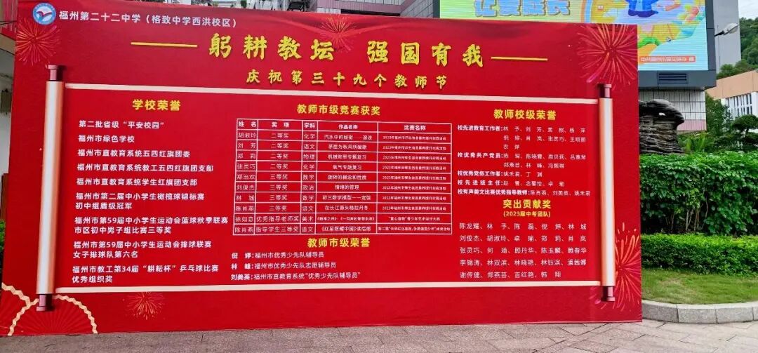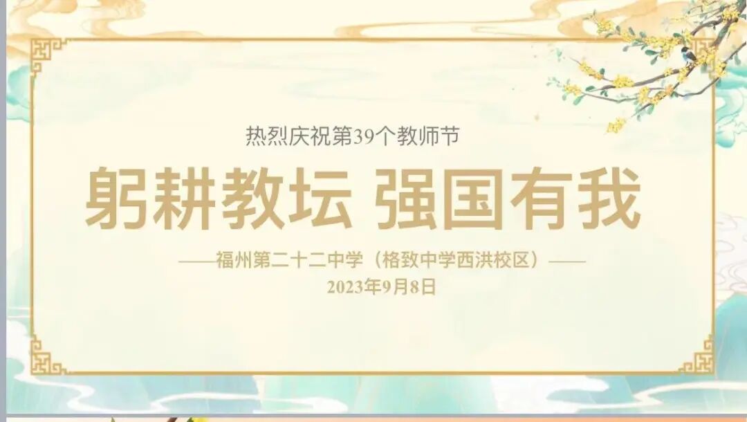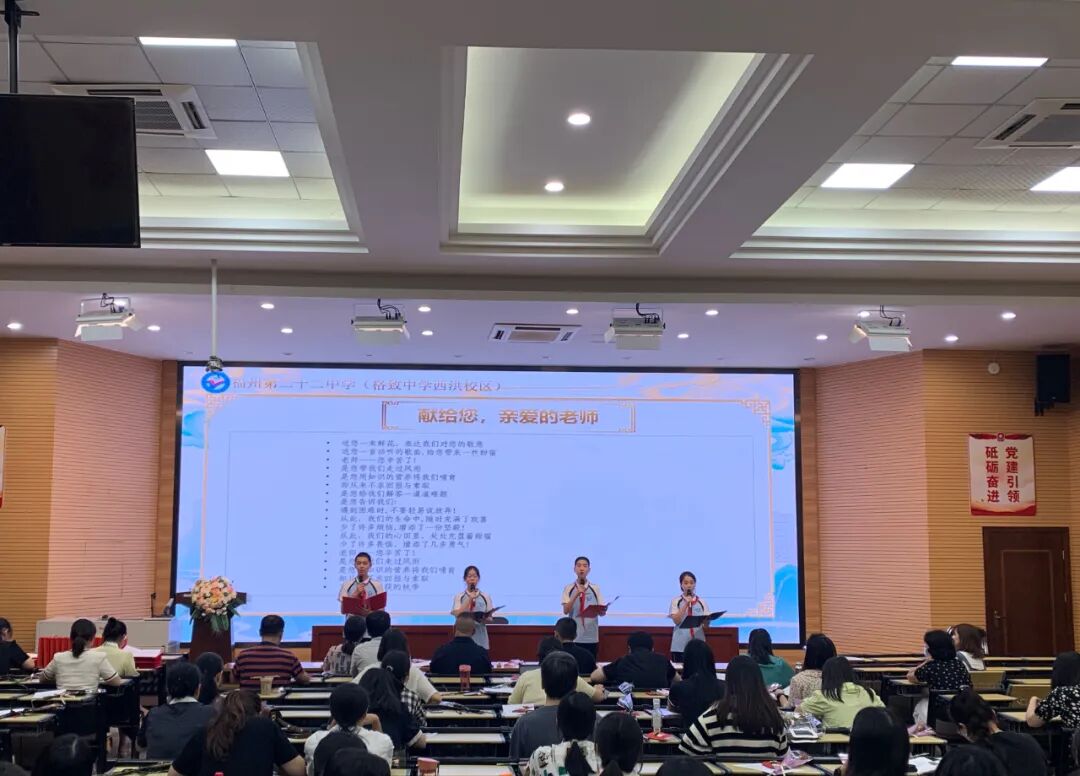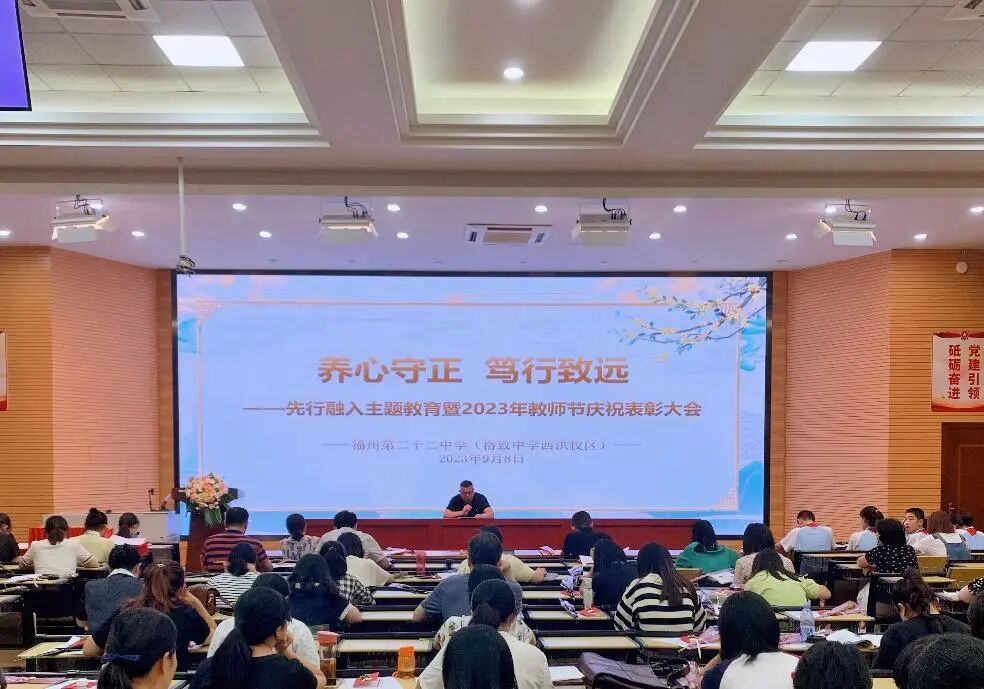 一腔热情,三尺讲台育英才;满身正气,一支粉笔谱华章。2023年9月8日下午,我校举行庆祝第三十九个教师节暨表彰大会,陈琛书记、林予副校长、陈磊副校长及全校教职工齐聚一堂,会议由办公室陈肖燕副主任主持。