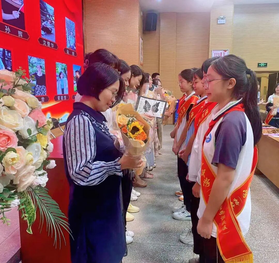 随后,我校学生代表向今年刚到我校支教的十三位老师赠送亲手制作的卡片并送上学校准备的鲜花,为亲爱的老师们送上最美好的祝福。