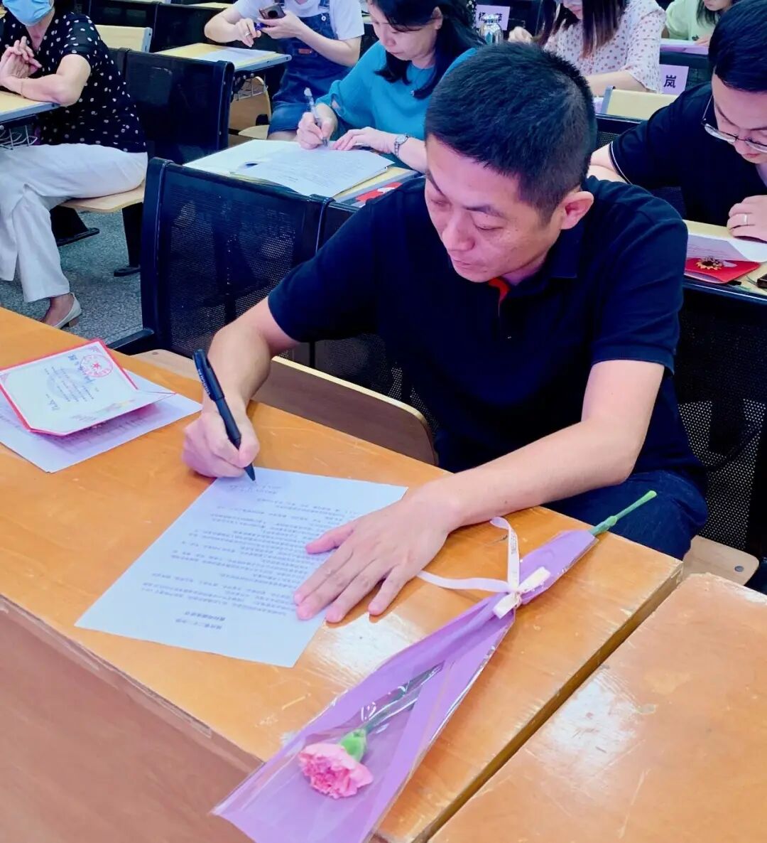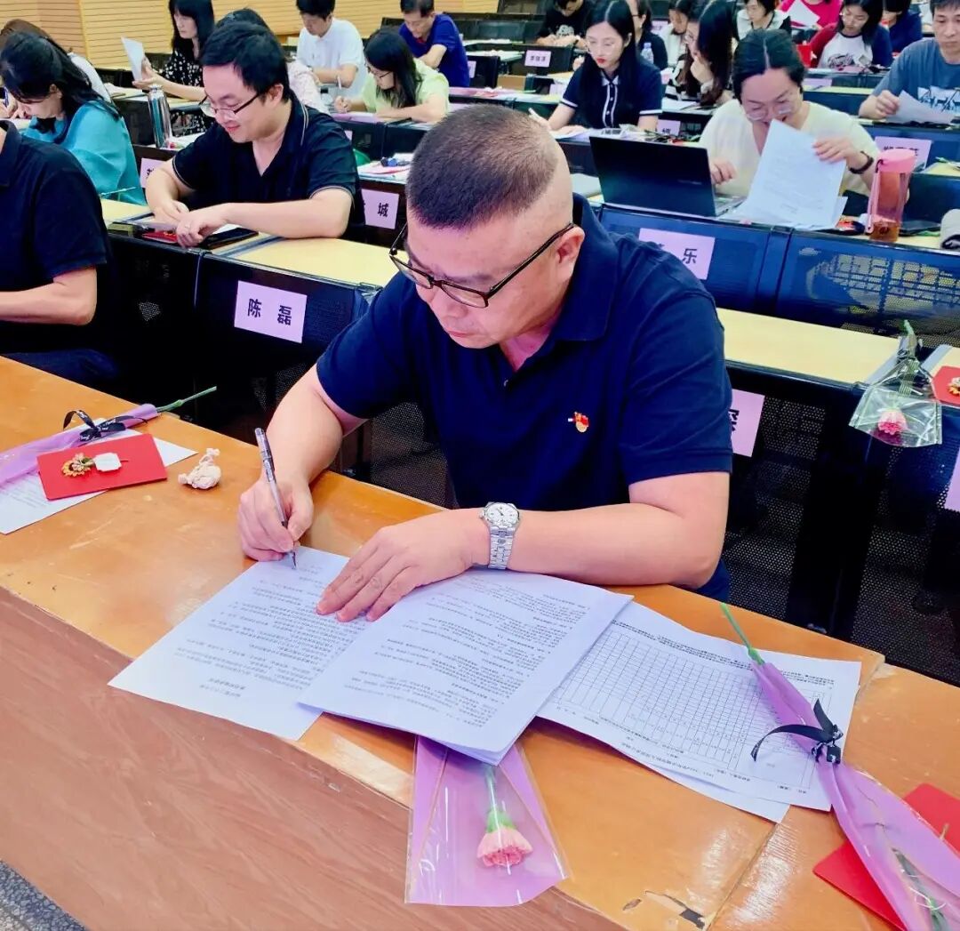 随后,在陈琛书记的带领下,全体教师一起签署《点点taptap官网师德师风承诺书》。陈琛书记对教师们提出殷切希望,牢记立德树人的根本任务,严格遵守职业道德规范,弘扬风清气正的职业操守,形成“团结互助、无私奉献、开拓创新”的工作作风,提高队伍的整体素质。