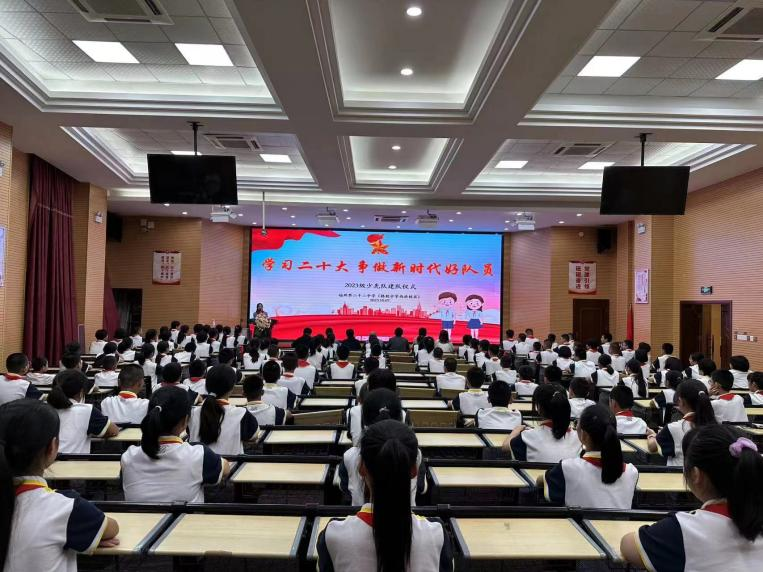 为庆祝中国少年先锋队建队74周年,以严谨认真的态度学习党的二十大精神,我校于2023年10月7日下午隆重举行“学习二十大 争做新时代好队员”为主题的2023级少先队建队仪式。我校领导、中层干部及中队辅导员出席了本次活动。本次建队仪式由校少先队大队辅导员倪婷老师主持。