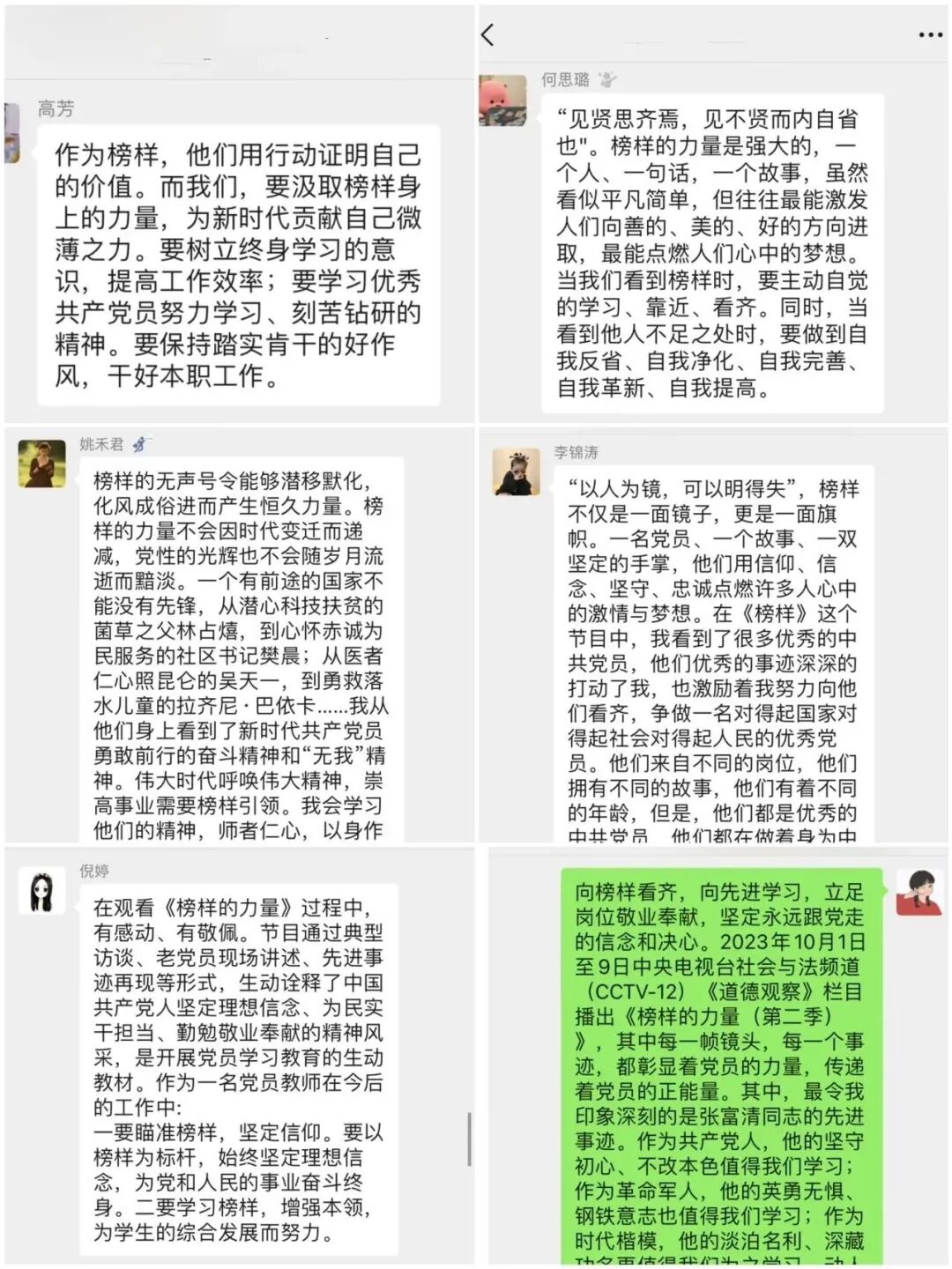 其他党员教师也为此展开积极的发言,营造出了崇尚榜样、对标榜样、向榜样看齐、与榜样同行的氛围。