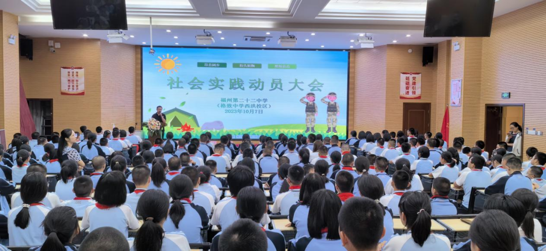 为了确保社会实践活动安全有序,德育处林城副主任为两个年段的学生分别召开了社会实践活动动员大会。鼓励同学们以积极的心态面对社会实践,在为期五天的集体生活里能学会团结互助、吃苦耐劳、坚持奋斗的实践精神。