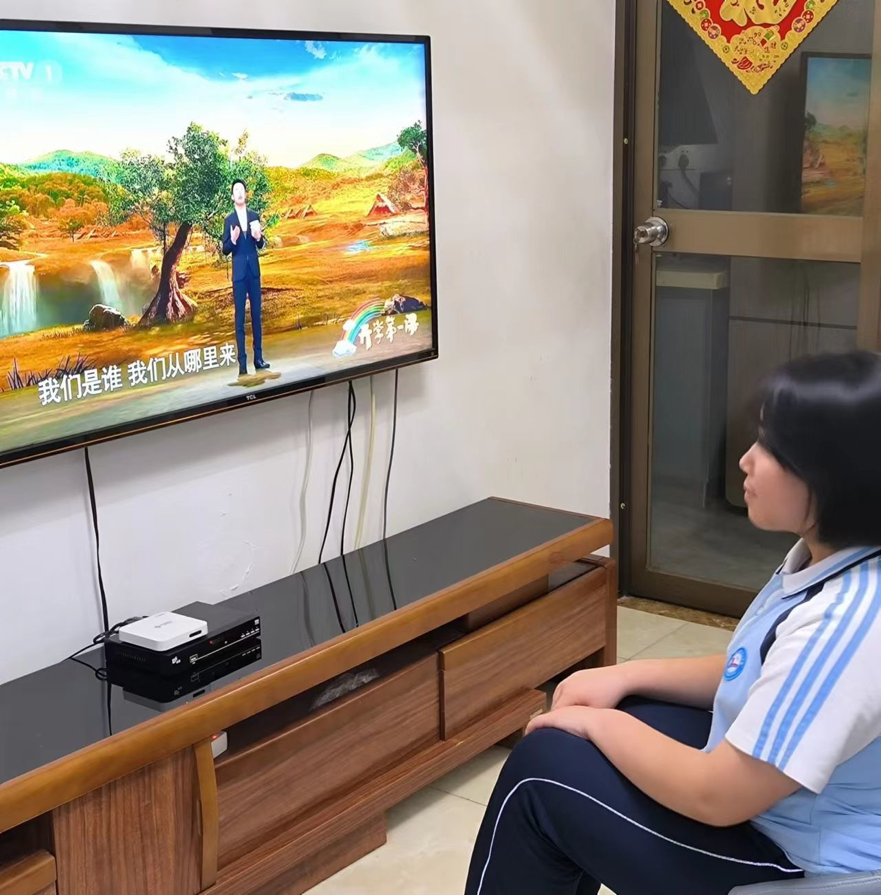 学校组织同学们观看参与央视以“强国复兴有我”为主题的开学第一课的线上课堂,授课嘉宾们用自己的人生经历和奋斗足迹传播知识。
