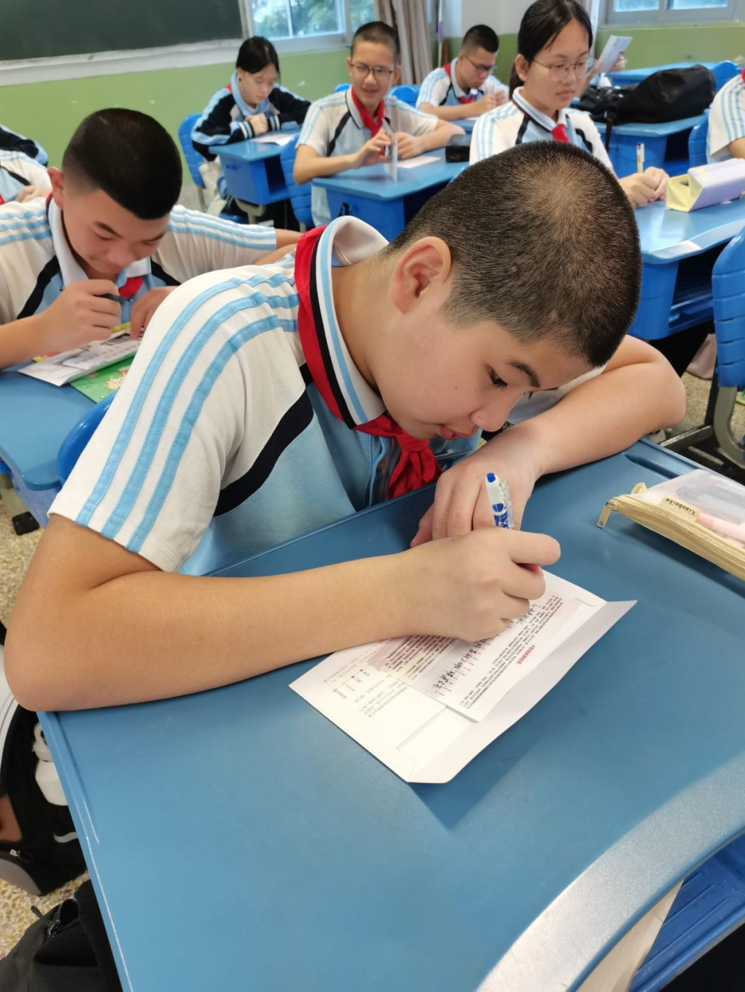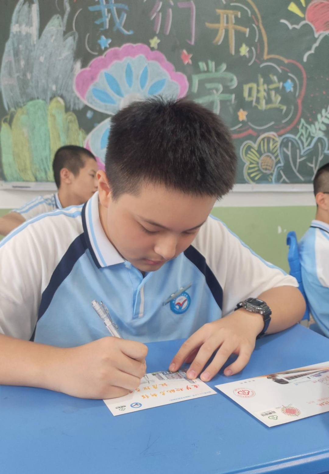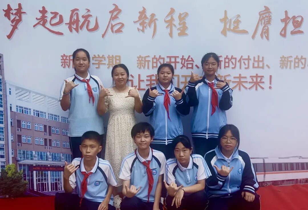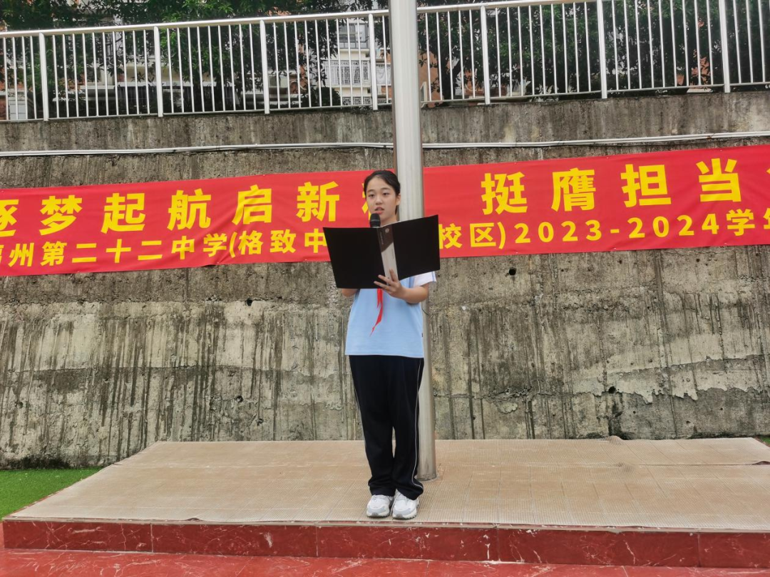 初二(1)班李子睿同学代表全体学生发言,在新的学期中希望同学们:做一个有理想、有抱负、执着追求的人,无畏挫折困难,勇于面对挑战,锐意进取,拼搏向上,做挺膺担当的时代青年!