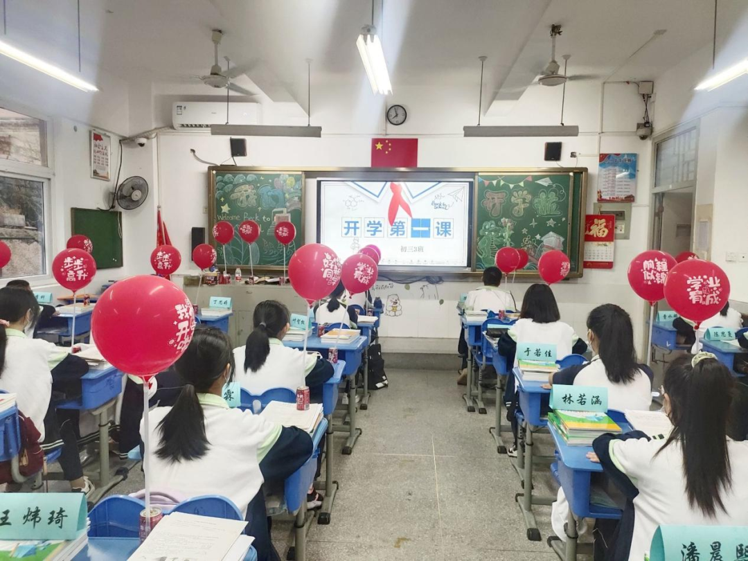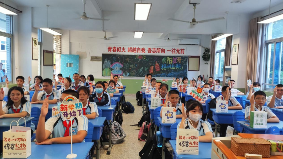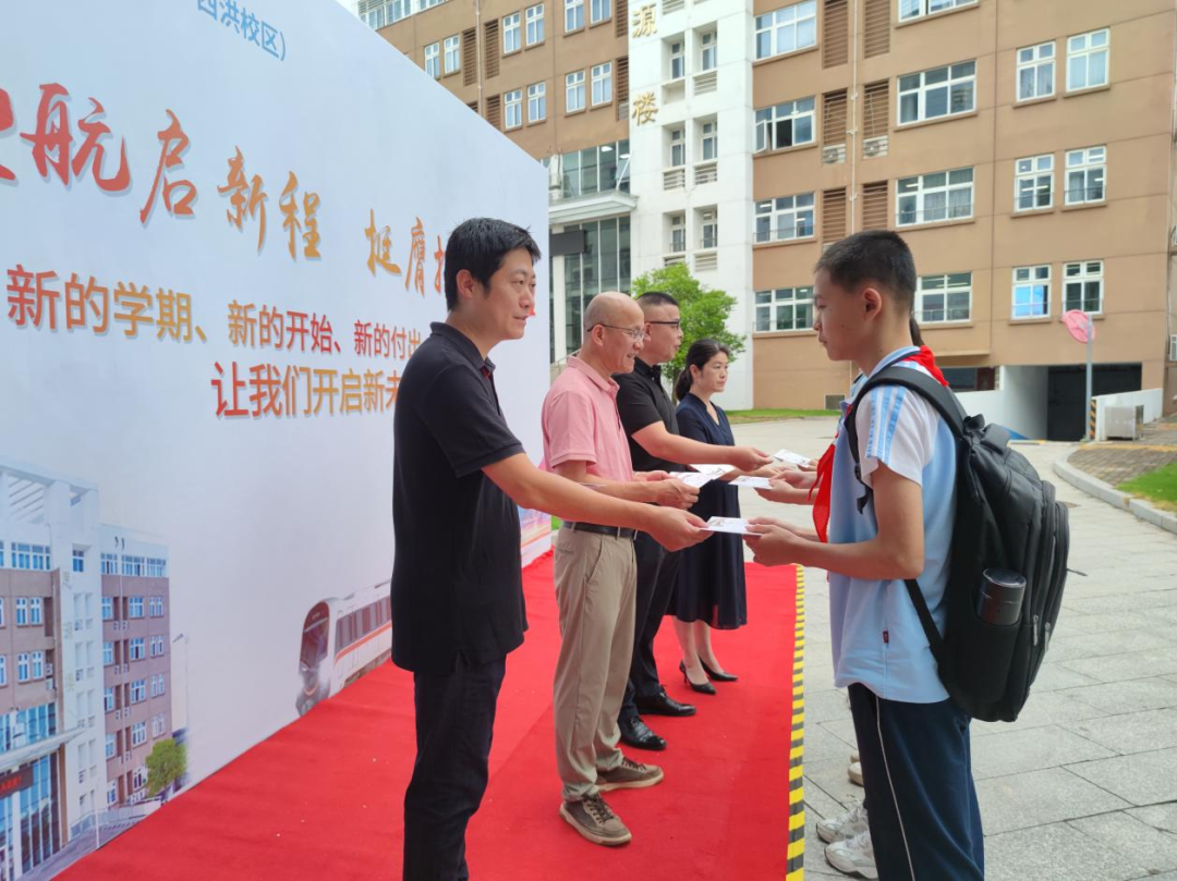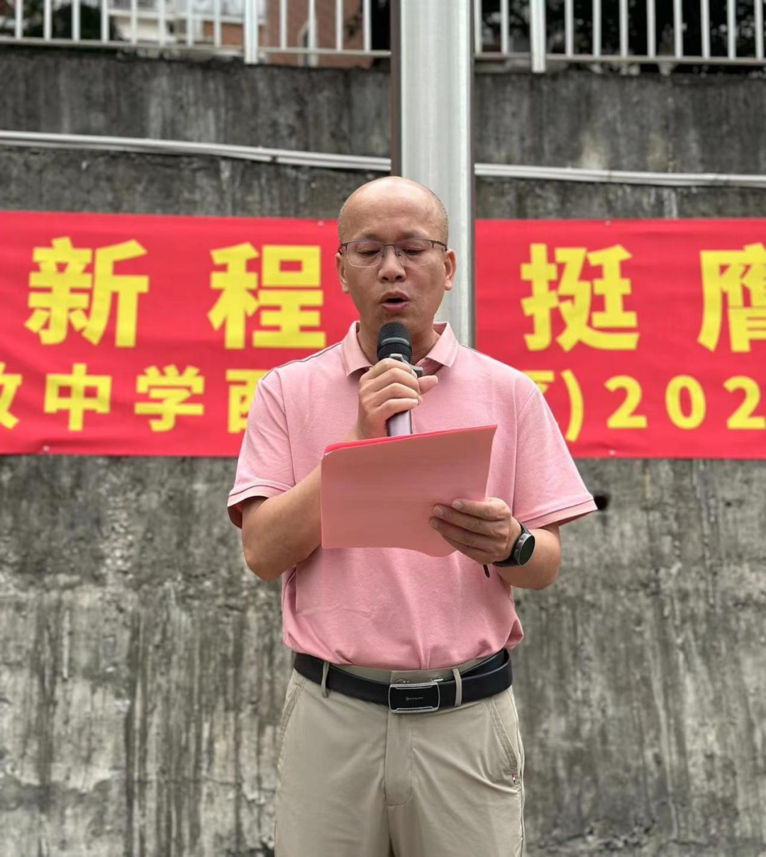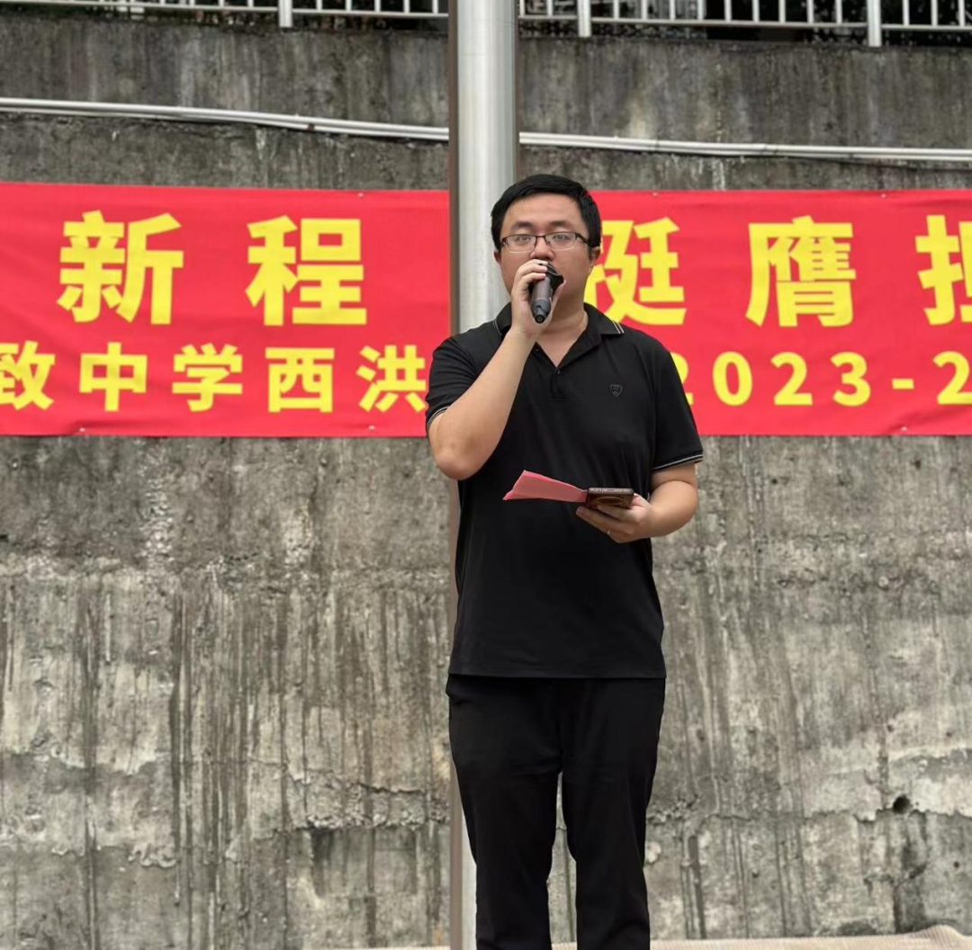 陈龙耀校长为开学仪式致辞。他向今年新加入大家庭的初一新生们表示热烈的欢迎,向上学期全体师生所做出的努力和所取得的成绩表示肯定,尤其是2023届初三学生取得的历史性突破和支教老师的全力支持,同时也向所有师生提出了殷切希望,愿全校师生新学期有新气象、新目标、新进步、新成绩。