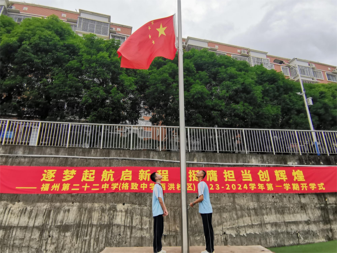 伴随着铿锵有力、旋律激昂的《义勇军进行曲》,全体师生肃立,齐唱国歌,开学典礼正式拉开序幕。