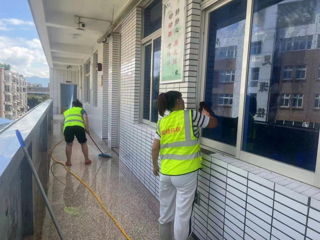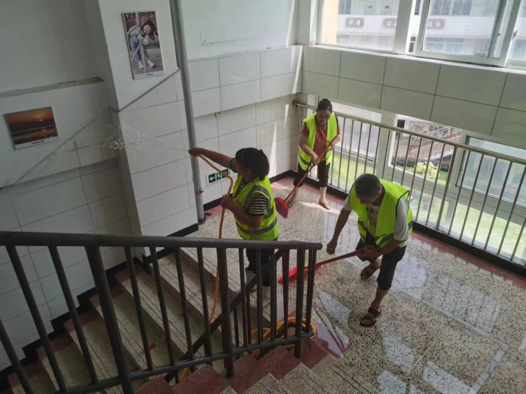 学生返校之前,总保处安排物业人员集中对校内公共区域进行了彻底的清扫,仔细擦洗校园公共设施,清理落叶修理杂草,及时清运垃圾,力求为师生营造安全卫生、干净整洁的校园环境。安排专业机构对饮水机进行维护和滤芯更换,保障全校师生饮水安全。校园里涌动着物业人员忙碌的身影,保洁阿姨们井然有序、分工明确,对校园的各个角落都进行了清扫,争取做到不留死角,不留盲区。