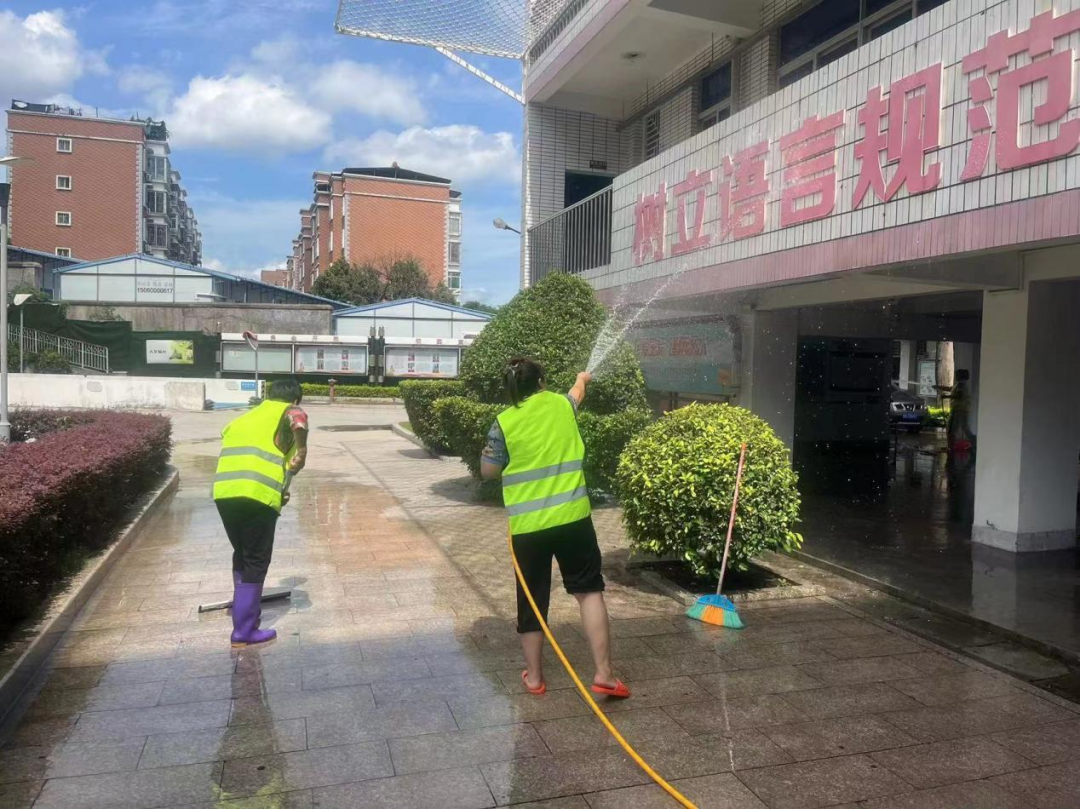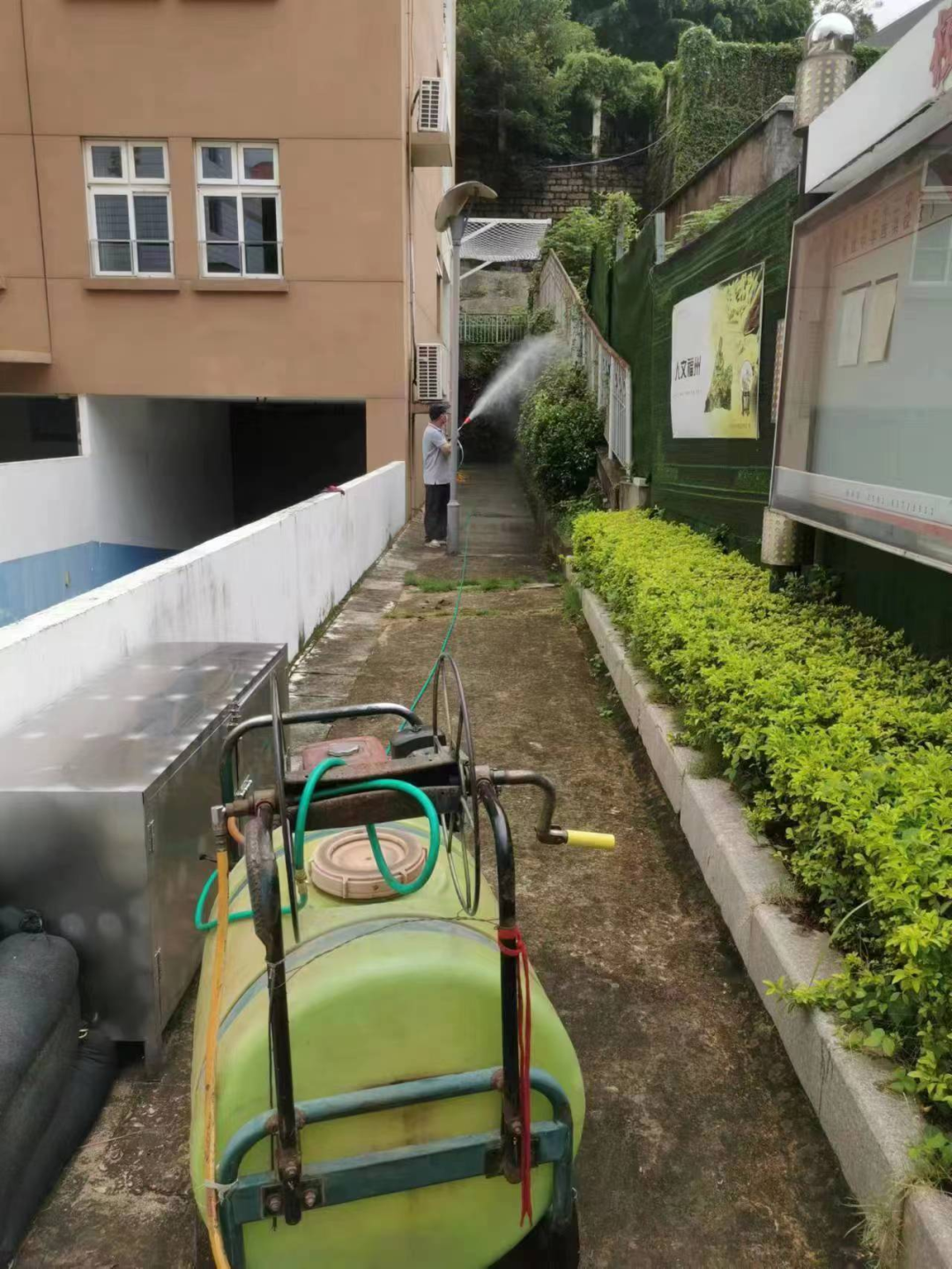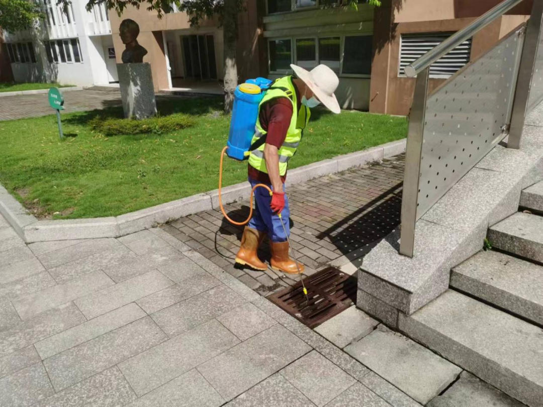 近期,随着雨量增加,蚊虫密度增高,登革热等蚊媒传染病传播风险逐渐增大。为全力做好病媒生物防治消杀工作,打造良好校园环境,做好开学准备,学校分工明确,逐一排查,对校园各处空地、绿地、花圃等场所进行了理垃圾杂物的清理,对容易积水的地方进行做了细致检查,通过翻盆倒罐进行清理及积水倾倒,清理校园环境中的污水、积水,进一步清除蚊虫孳生地,清理过的喷灌倒扣处理,防止降雨引发再次积水,同时我校多次安排专人入校进行全面科学的消杀,消杀人员对教室、楼道、花圃、水沟等进行消杀和清洁,预防登革热发生。