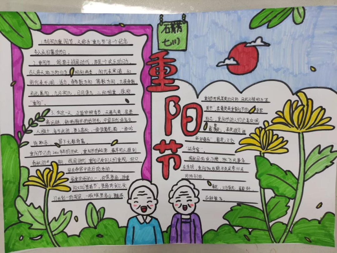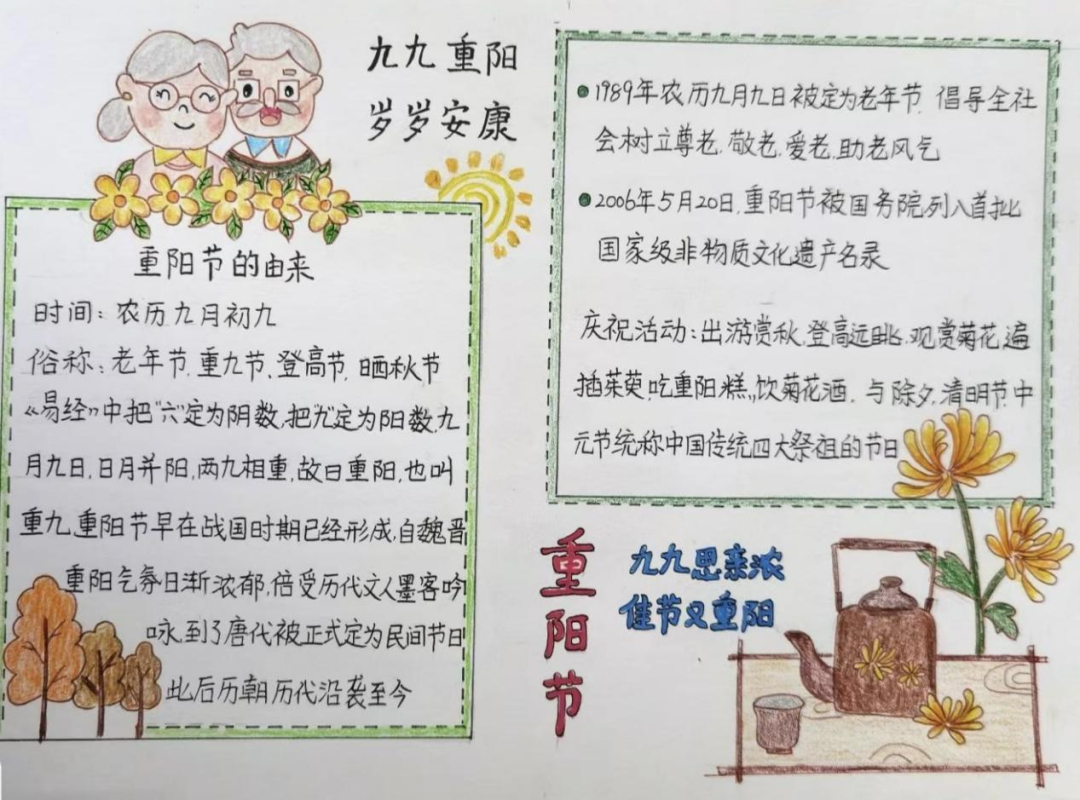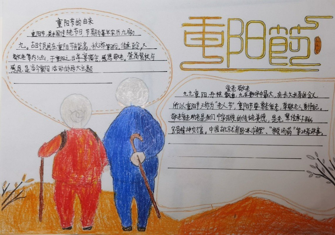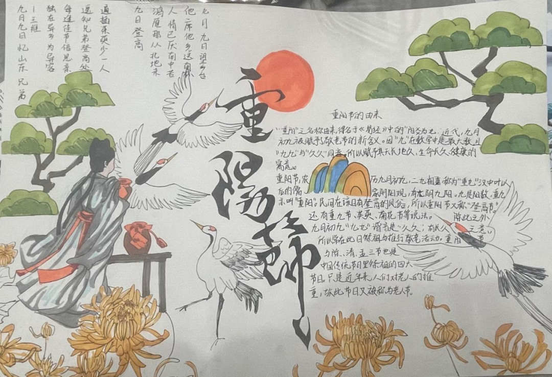 同学们以重阳节的来历、习俗等元素充分发挥想象力和创造力,画出了一幅幅精美的手抄报。