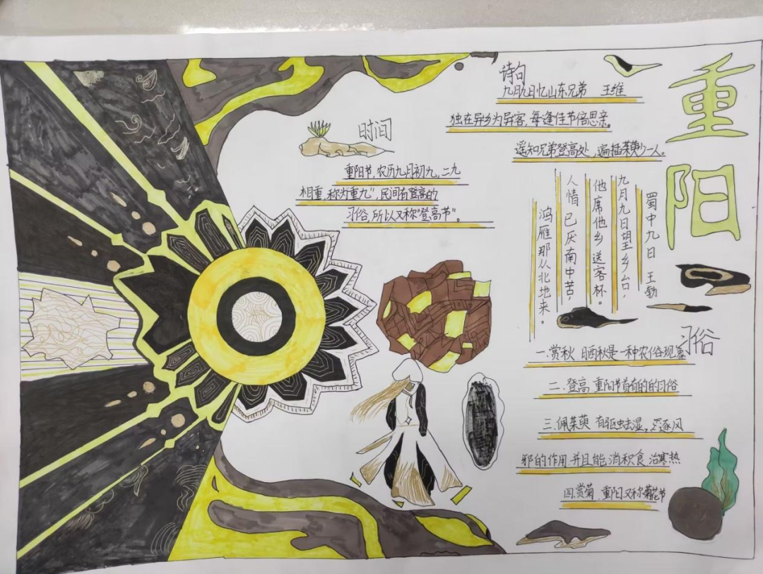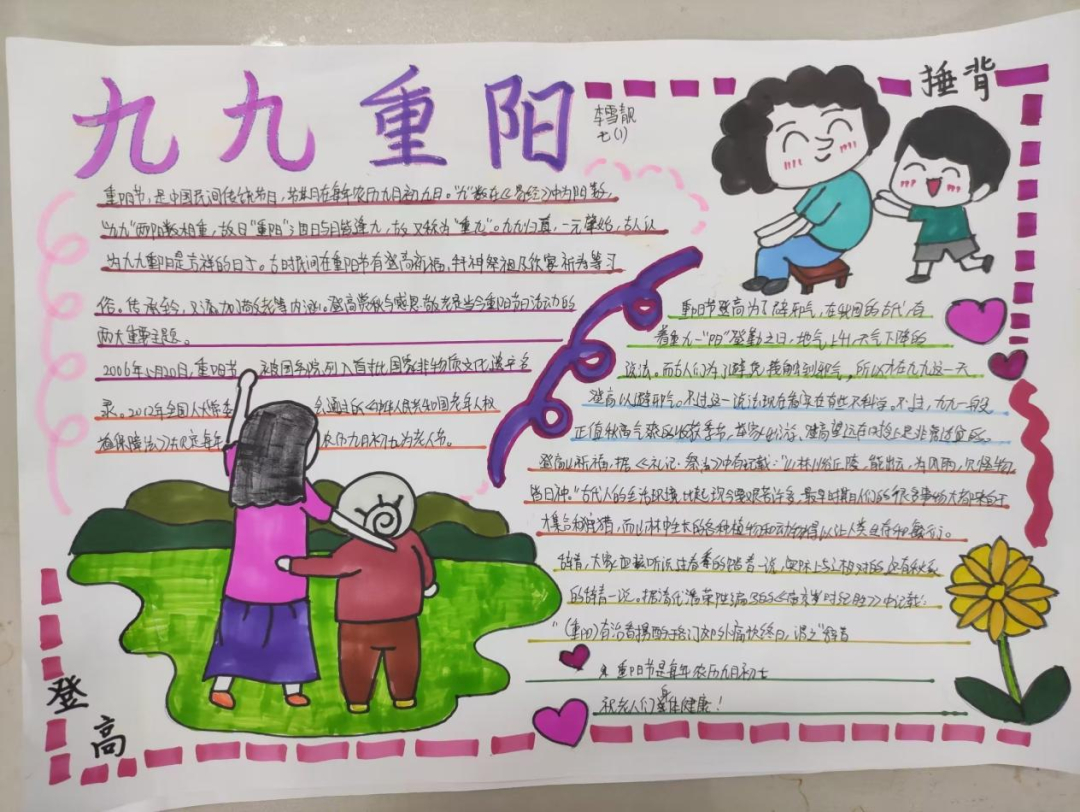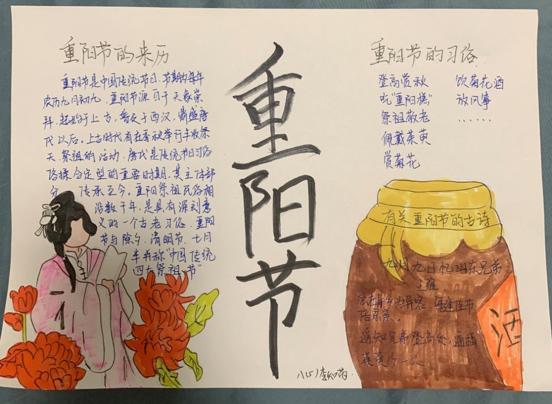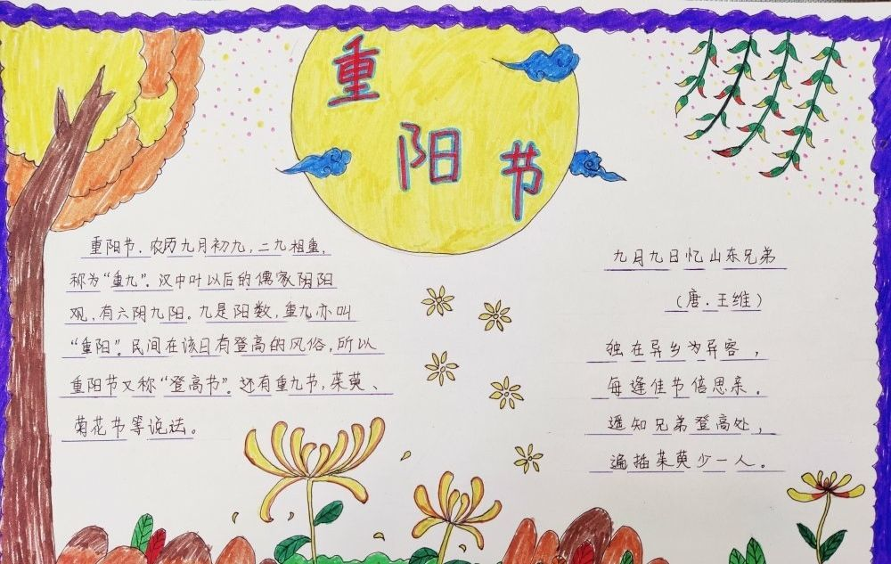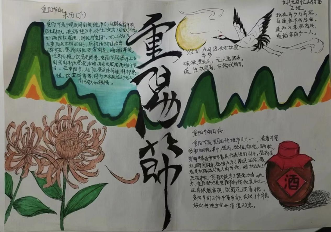 同学们以重阳节的来历、习俗等元素充分发挥想象力和创造力,画出了一幅幅精美的手抄报。