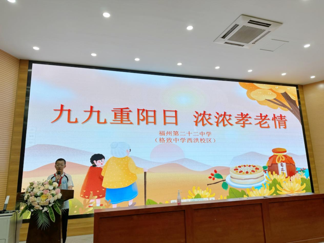 初二(5)班杨弈宸同学在国旗下讲话中,介绍重阳节的由来、历史典故等,强调尊老爱老是中华民族的传统美德,号召全校师生从自己做起,从小事做起,真正做到用仁爱之心来爱人,用爱人之心来尊老。