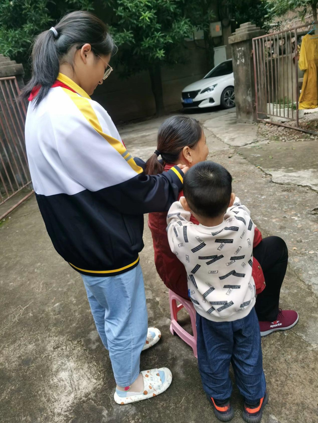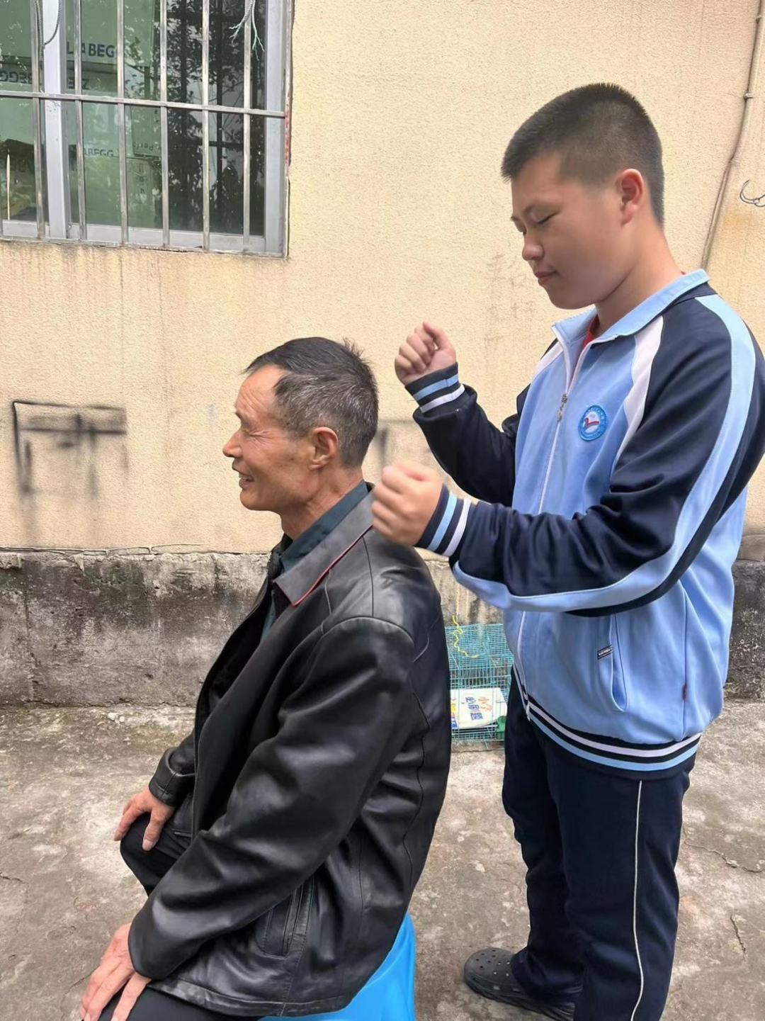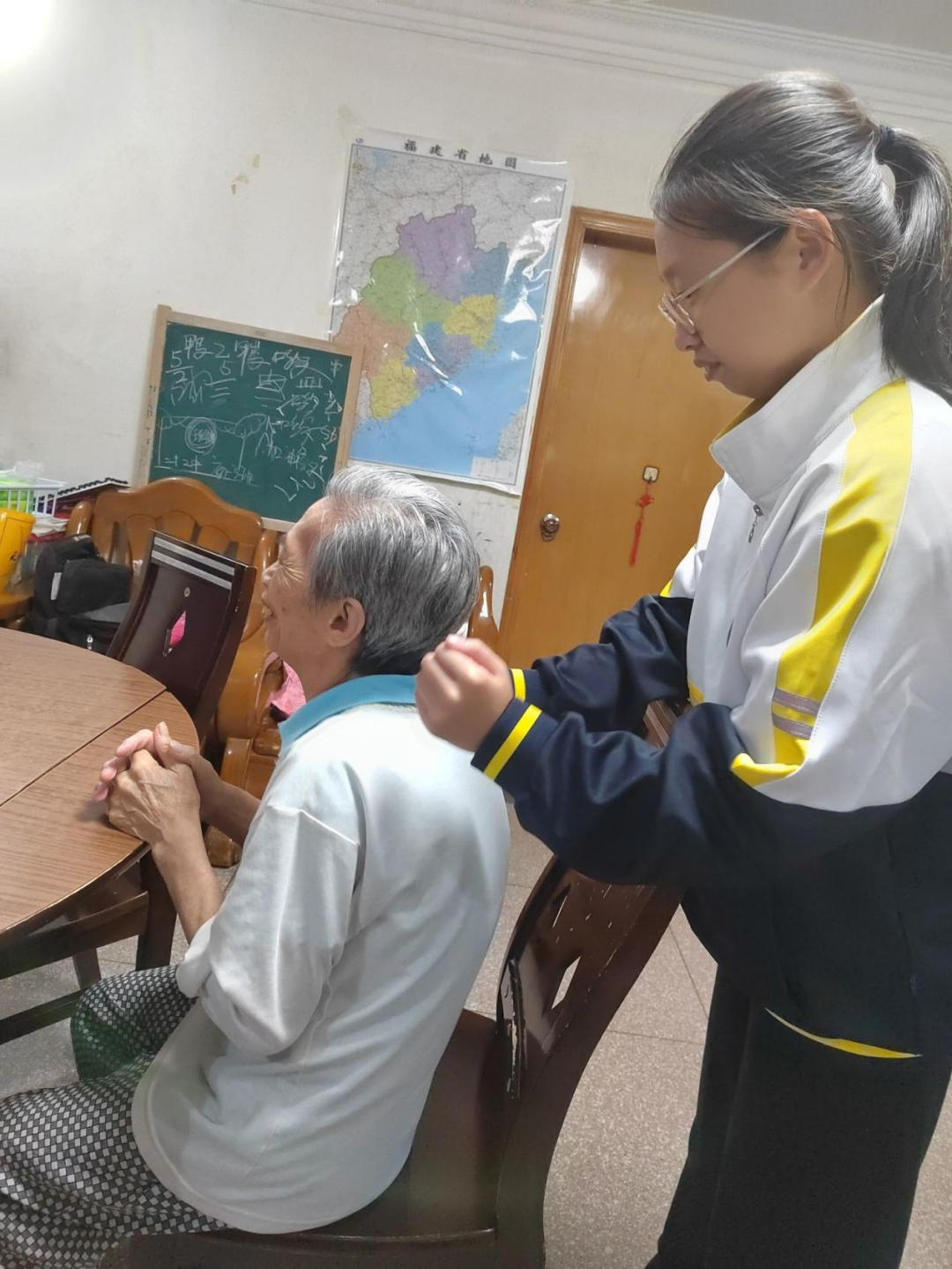 趁着重阳节,同学们为长辈揉一揉肩、捶一捶背,做些力所能及的事情。将“爱老”、“敬老”的承诺践行在生活的点滴中,将孝心付诸行动。