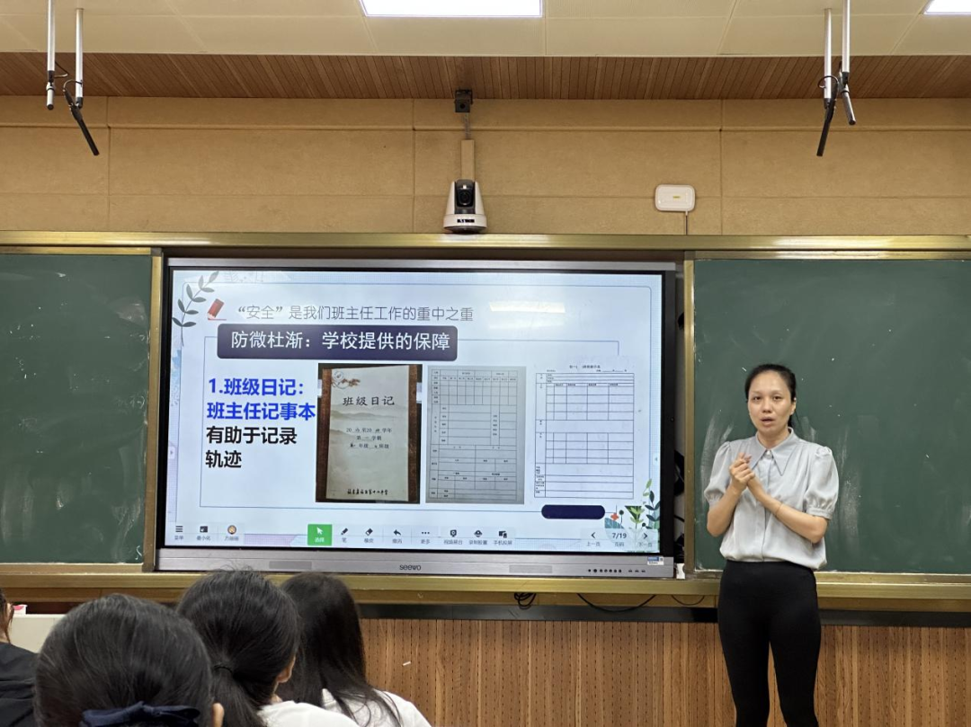 方丽丽老师是一名具有丰富德育管理经验的优秀教师,由她担任班主任进行管理的初二(5)班班级团结、学习氛围浓厚。方丽丽老师以《守护安全助成长,凝心聚力共奋进》为主题,从安全和心理两个方面来分享班级的日常管理工作。