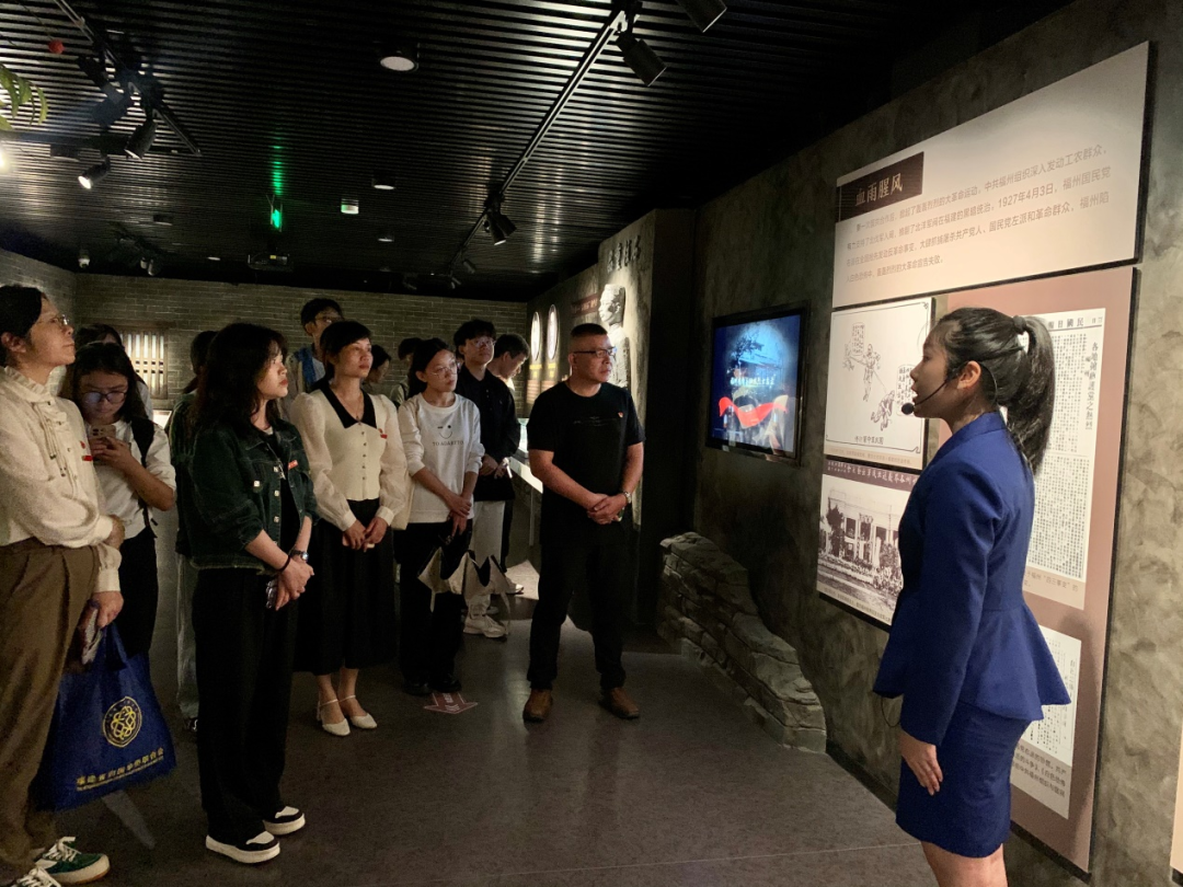 党建聚合力,共建暖民心。为深入开展习近平新时代中国特色社会主义思想主题教育,推进学校与社区居民形成合作协力,达成共建共荣。2023年10月24日上午,点点taptap官网党总支陈琛书记带领部分青年党员教师出席凤凰池社区党委党建联席会议,并与其联合共建单位部分党员在福州市革命英烈事迹陈列馆内,开展了一堂以“参观、演绎、互动、感悟”为主题的教育微党课。