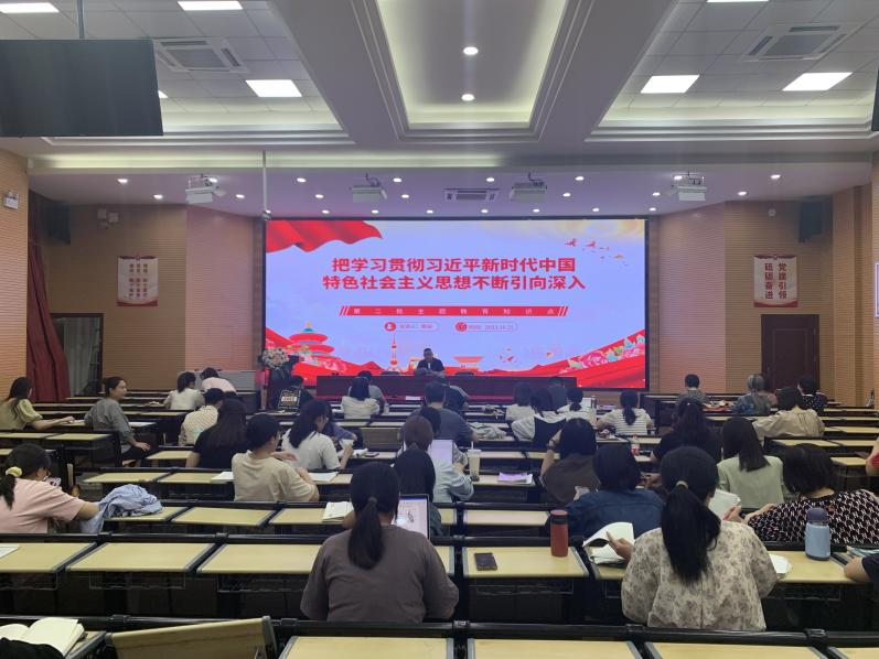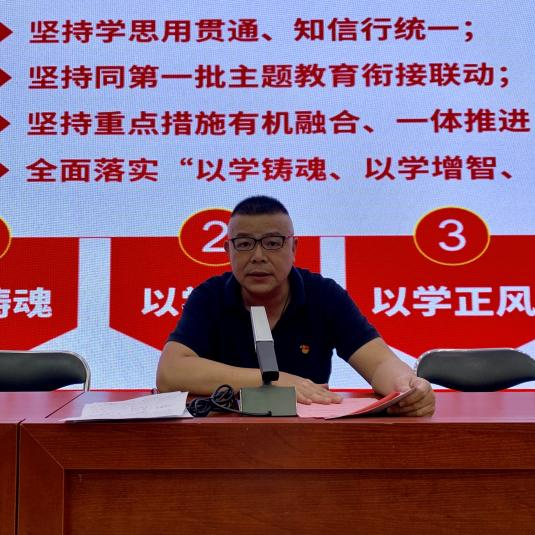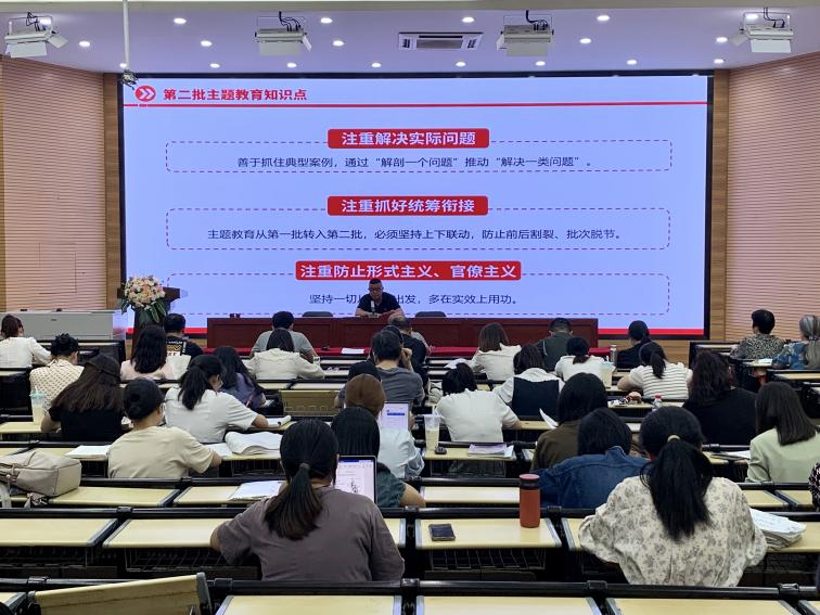 会议伊始,校党总支陈琛书记以《把学习贯彻习近平新时代中国特色社会主义思想不断引向深入》为主题,紧紧围绕“学思想 强党性 重实践 建新功”的总要求,充分借鉴运用第一批主题教育成功经验,以开展第二批主题教育要做到“五个注重”为引导,详细阐述了“五个注重”的内涵与要求,同时进一步强调在主题教育中该如何学习运用好“五个注重”,为大家上了一堂精彩而生动的党课。