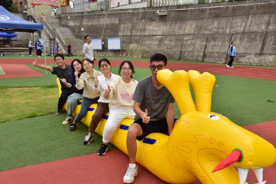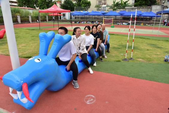 旱地龙舟融合了传统龙舟和现代创新元素,不受场地限制,灵活易操作,教工们借此感受趣味运动的乐趣!