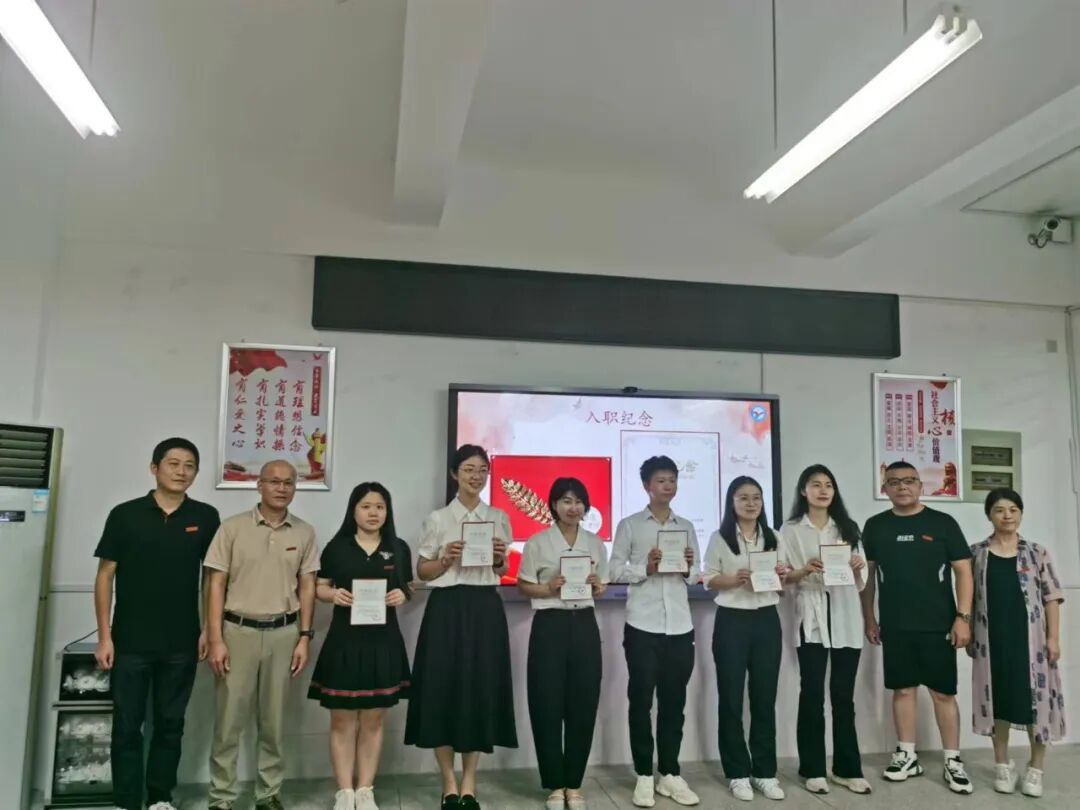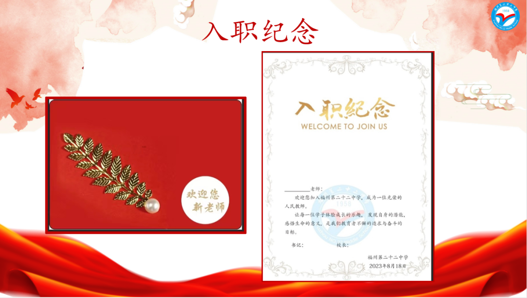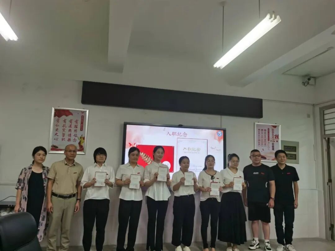 接下来,是激动人心的授徽仪式,校领导为新入职的教师们赠予校徽、颁发入职纪念证书,表达了对新入职教师的欢迎与期望。