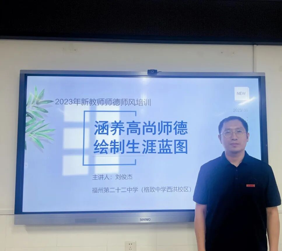 师德是教育之魂。推进新教师师德师风建设工作,增强新教师的责任意识与服务意识,对于刚踏入教师职业生涯的新教师来说尤为重要。办公室刘俊杰主任结合真实案例与老师们分享了《涵养高尚师德 绘制生涯蓝图》为主题的师德师风专题培训,并为新老师解读了《新时代中小学教师职业行为十项准则》、《福建省中小学教师职业道德考核办法的20条禁令》等内容,引导新教师规范职业行为,明确师德底线,并做好职业生涯规划,努力成为一名有理想信念、有道德情操、有扎实学识、有仁爱之心的优秀老师。本场培训让新教师对于师德师风要求和未来职业生涯发展方向有了更清晰的认识。新教师纷纷表示,未来路上,我们将坚定自己的信念,争做一名“四有”好老师,以身作则,言传身教。