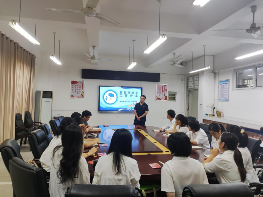 入职仪式结束后,由办公室刘俊杰主任、教务处黄照主任、德育处林城副主任为新教师进行了师德师风、德育浸润、教学提升方面的岗前培训。
