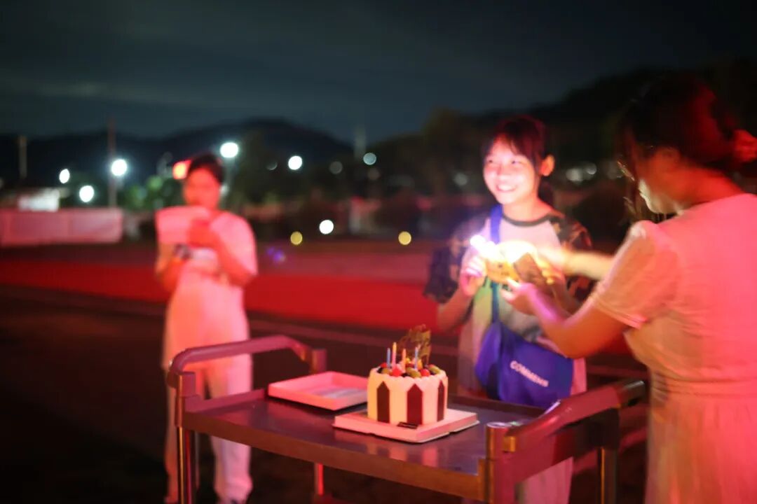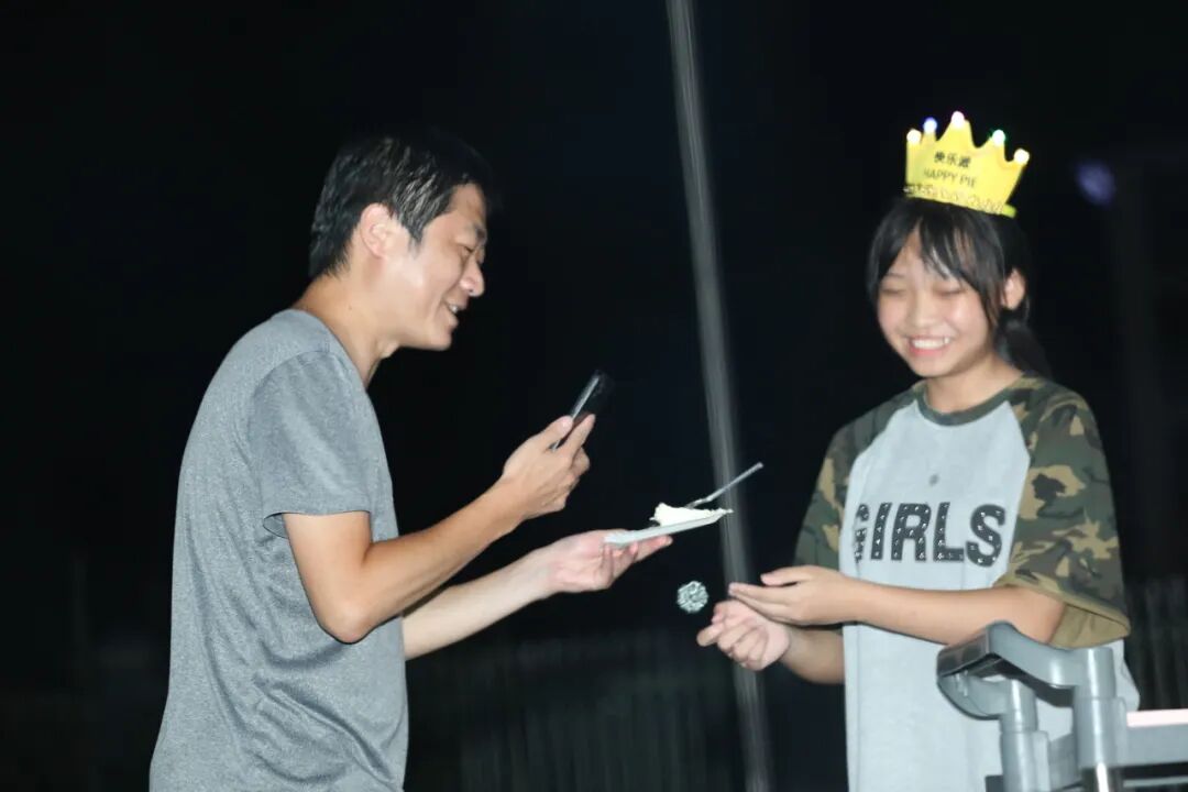 今天精彩的泰宁之行结束后,同学们还为联欢晚会精心准备了各种节目,让大家在放松心情的同时能够展现自己的才艺和激情。在联欢晚会中,校领导还为在本次研学期间过生日的杨玉杉同学准备了一场特别的生日惊喜,大家围在篝火旁,一起为她献唱生日歌,在欢声笑语中留下每个人对小寿星的祝福。