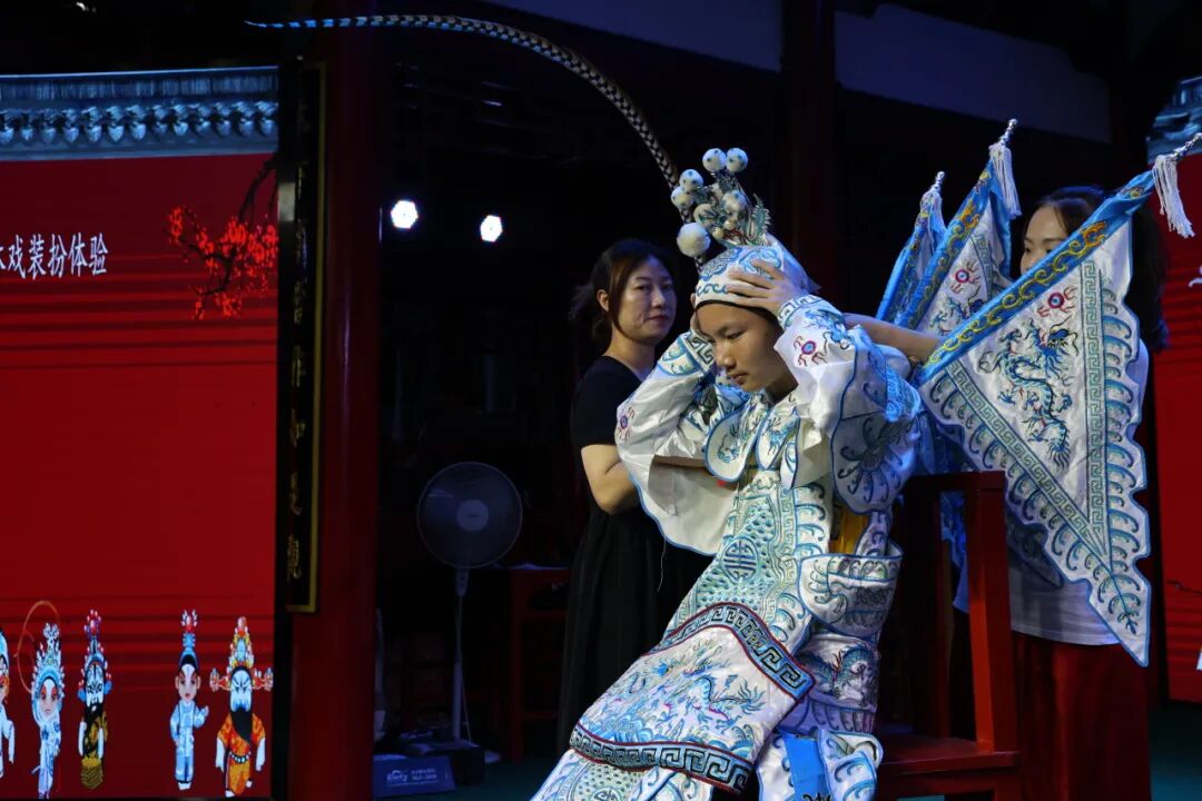 同学们换上戏服,变身梅林戏小演员。通过亲身参与体验梅林戏演出,不仅锻炼了同学们的表演能力,更让大家对传统文化有了更深的理解和认识。