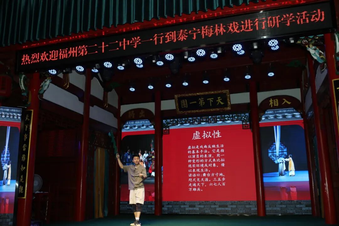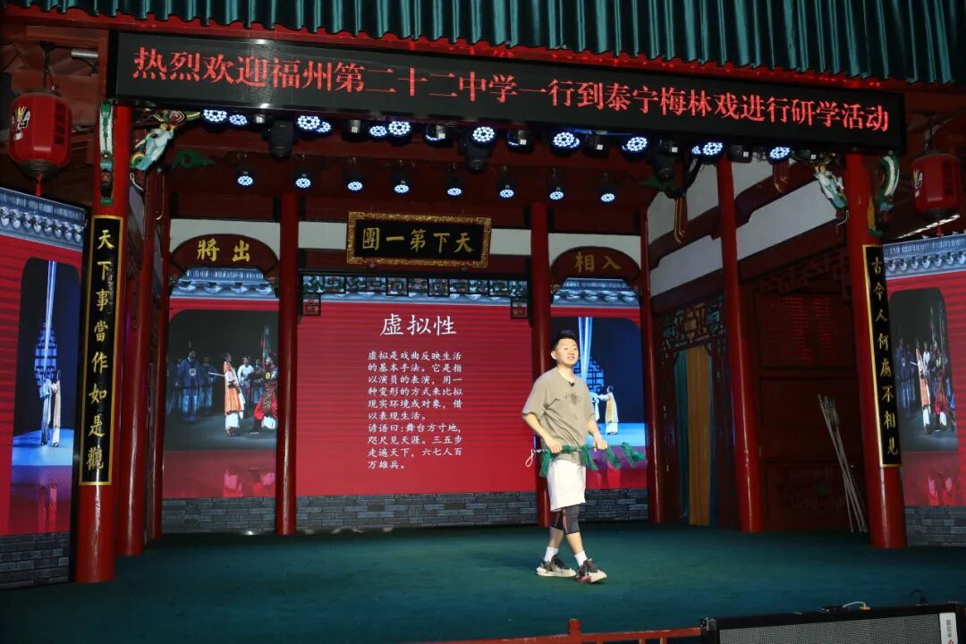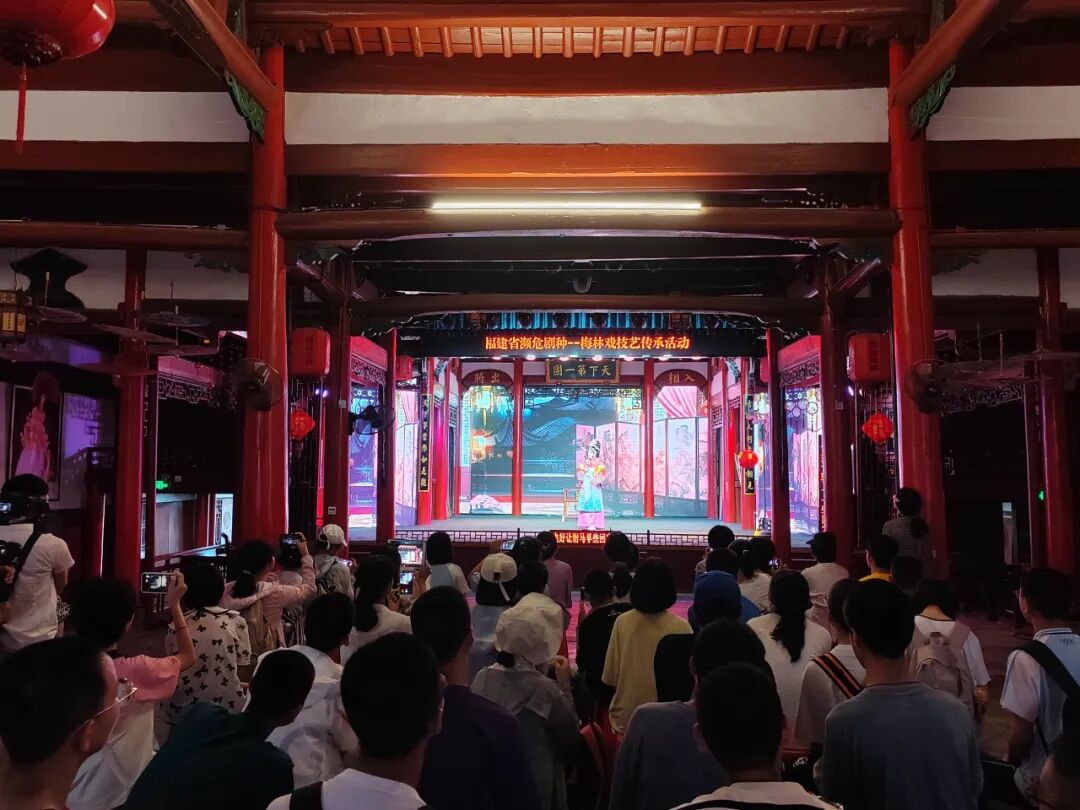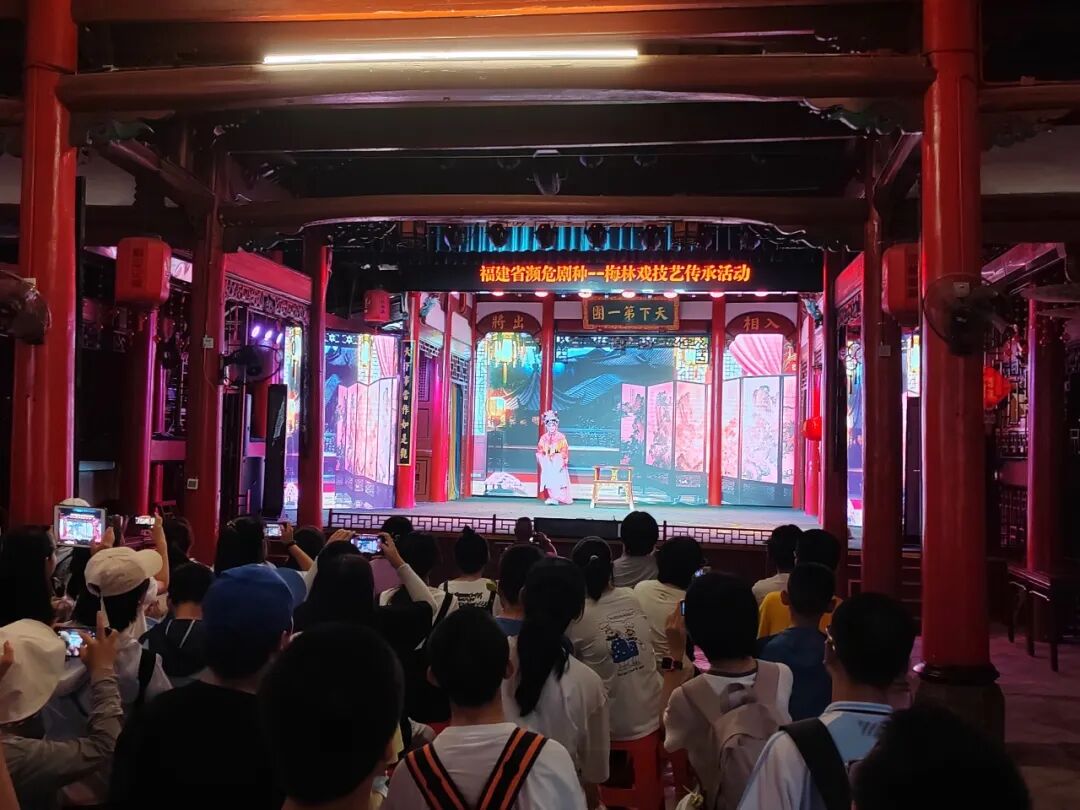 在梅林戏剧院中,同学们获得了一张精彩的梅林戏“体验卡”。梅林戏作为泰宁地区重要的传统戏曲形式,以其特有的表演风格和丰富的剧情吸引了许多观众。