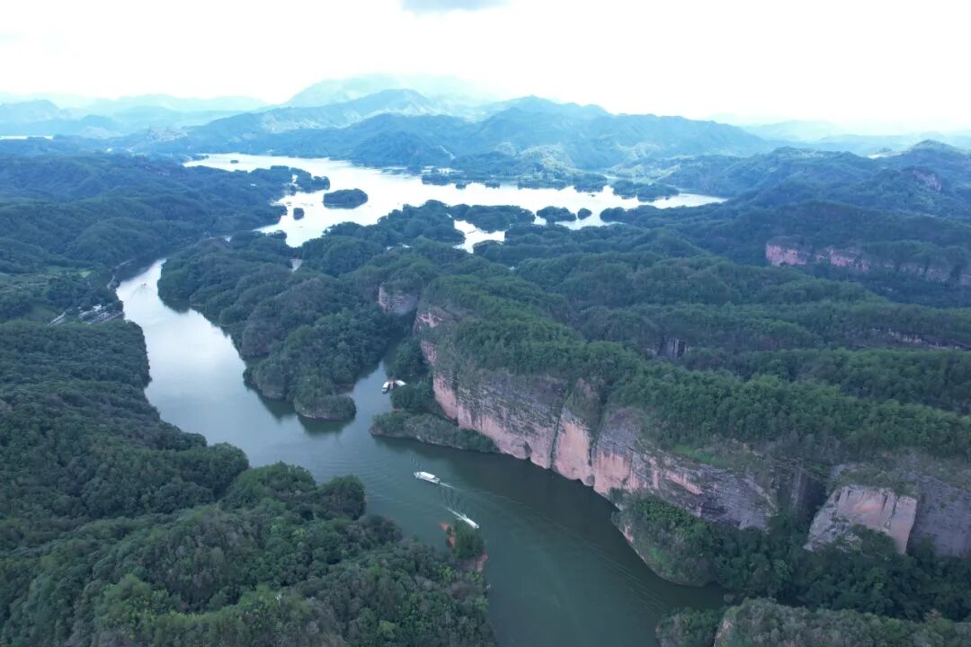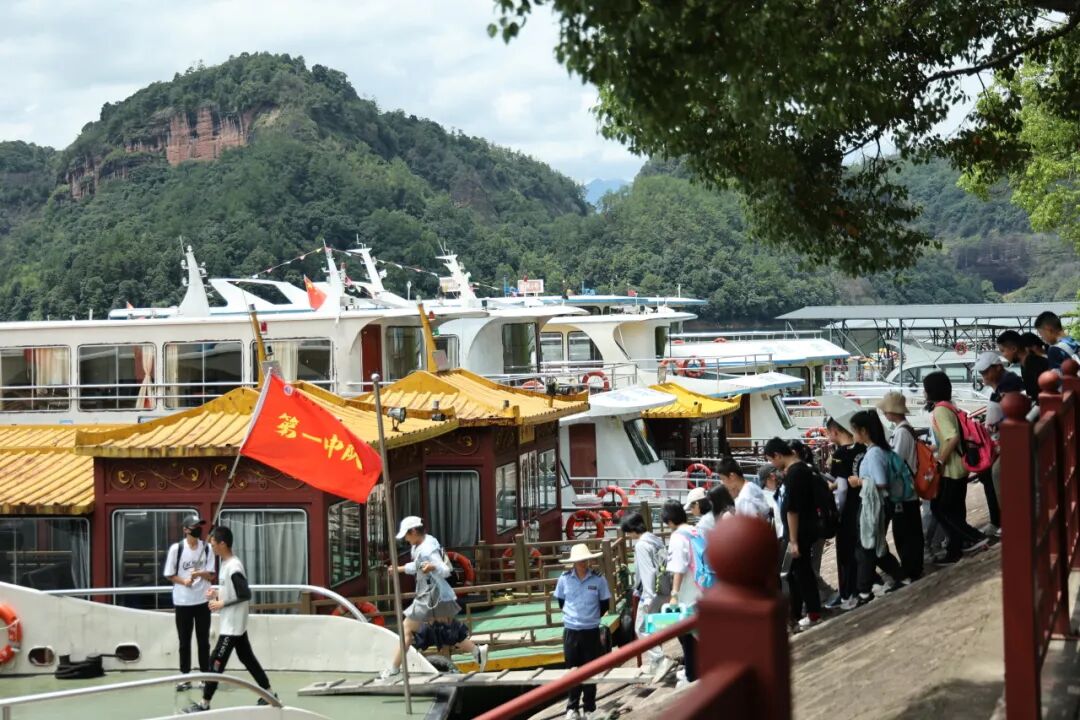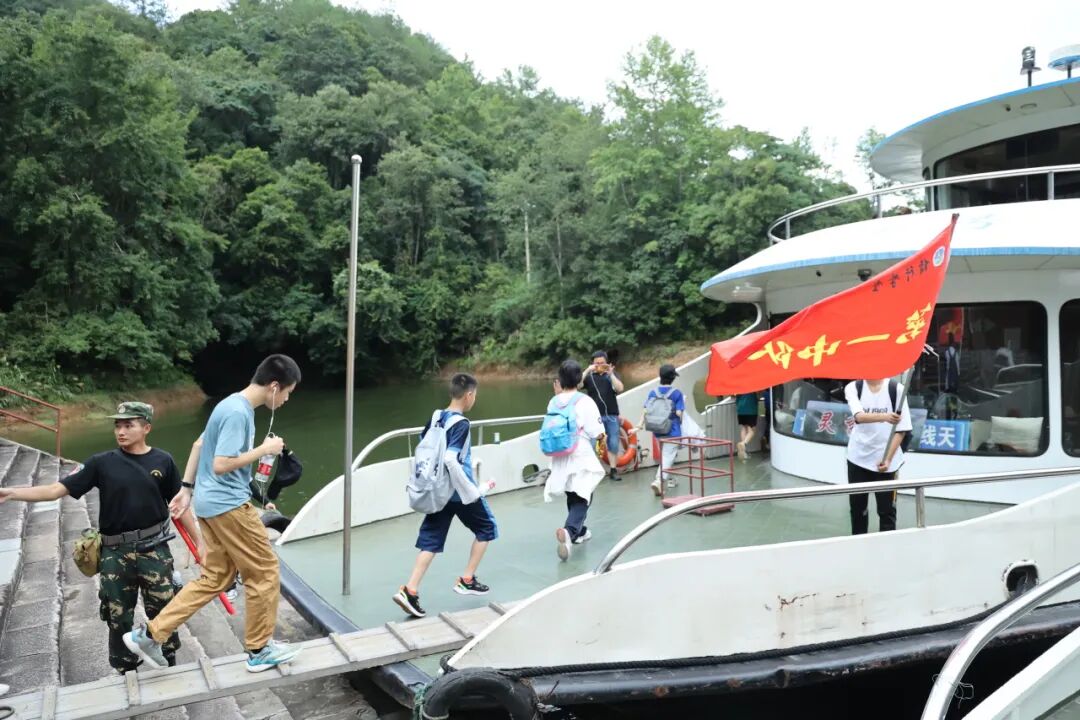 午餐后,同学们前往大金湖景区,乘船考察了水上丹霞。大金湖丹霞景区位于泰宁县境内,因气质磅礴、蔚为壮观的丹霞地貌与钟灵毓秀、烟波浩荡的金湖碧水而闻名。其丹霞地貌空间分布独特,峰柱地貌发育典型,是“青年期丹霞地貌”的代表。