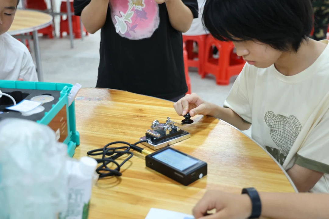 晚上,研学指导师首先为同学们讲述红军地下工作者使用电报发送密令的历史和军用电信基础知识。随后,在研学指导师的指导下,同学们利用研学探究的教具体验从发出电报、接收电报到消息译制的过程,时光仿佛回到了那个战火纷飞的年代。同学们一边感受科技的伟大,一边体验红军时期时期地下工作者的艰辛和不易。同学们感受到电报繁琐复杂,地下工作者冒着生命危险发出“生死存亡的电报信息”,因为他们的付出才有了现在的美好生活,我们要缅怀先烈,珍惜当下的生活”。