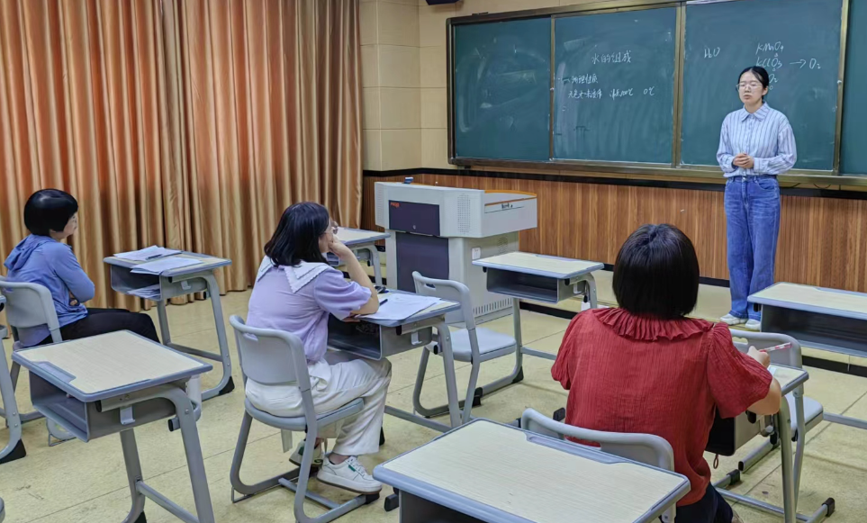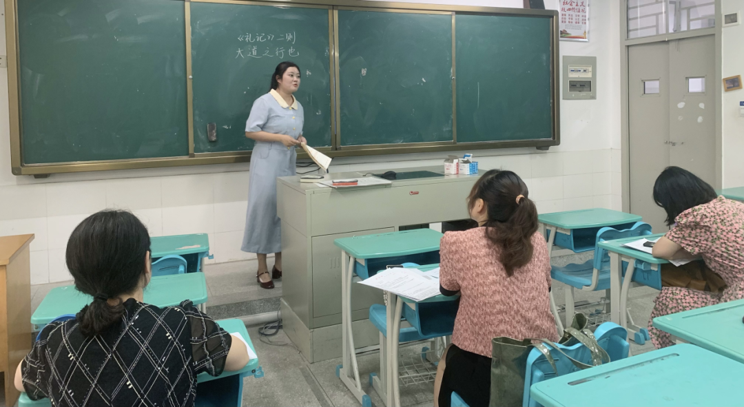 语文组姚禾君老师声情并茂朗诵《大道之行也》,引领学生感受传统文化之美,坚定文化自信,鼓励学生为实现国家当代的“大同”而奋斗;英语组何孟婷老师通过视频《Uniforms》引入新课,教态亲切自然,教学环节丝丝入扣,呈现多彩课堂;地理组杜雨欣老师提笔画黄河,直观形象地展示了黄河上、中、下游地区的水系图;数学组郑治欢和念雨薇两位教师从回顾旧知入手,通过问题激发学生思维,从而探讨新知,念馨怡老师则通过展示相关图片来引导学生思考得出“平行四边形”的特征;物理组郑莉老师创设脚踩钉子的情境,贴近学生生活,引起学生共鸣;化学组张灵巧老师从制取氧气物质的共同点启发学生探究水的组成思路;体育组林钰滨、李锦涛老师动作讲解示范到位,布置学生分层练习。他们以积极饱满的精神,富有感染力的语言,充分展示出各自的教学功底与课堂风采。