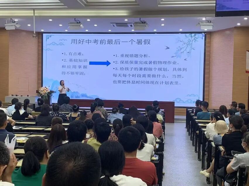 陈龙耀校长介绍了学校近期取得的成绩,明确了初三家长需要注意的问题,对于孩子,初三正处在最关键的一步,学校和家长要助力孩子向前奔跑,不仅要去了解中考,也要去认识初三的孩子,同时提醒家长需帮助孩子利用好即将到来的暑假,巩固旧的知识,预习初三的新内容。
