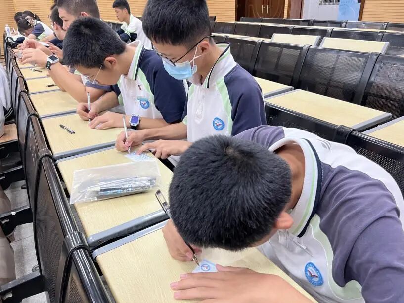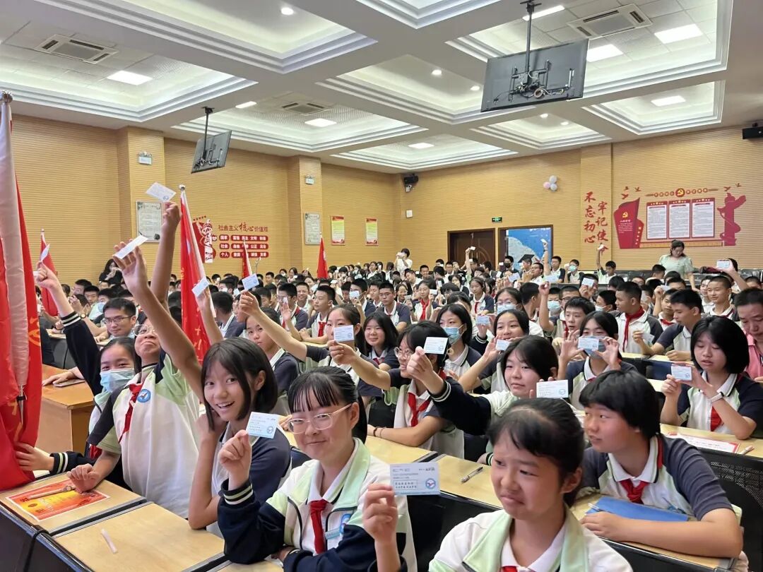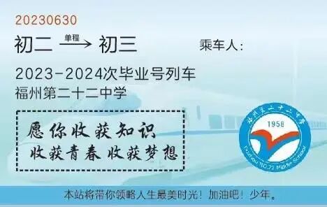 闽江水畔,西湖之滨见证了学子们两年来的青春激情和铿锵誓言,随后学生们领取了自己专属的中考单程车票,起点是初二,终点站是初三。孩子们一笔一划认真地在车票上写下自己的名字,也是许下了自己对即将到来的初三的美好希冀与憧憬。而他们的身后,将是全校师生对他们永远的祝福与支持。