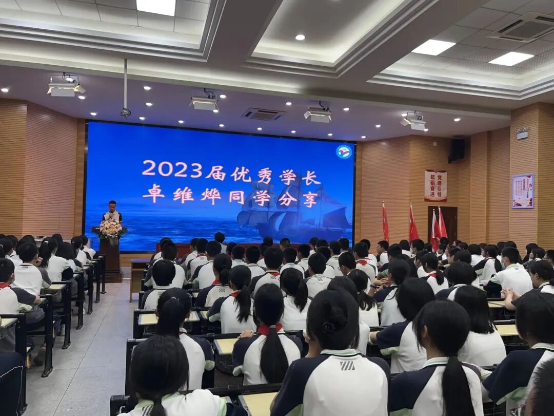 欲行至远方,就要心怀梦想。古人常云“胸有凌云志,无高不可攀”。为了帮助同学们更加清晰明确地了解初三的学习过程,本次动员大会还特地邀请到刚刚毕业的2023届初三卓维烨同学,为学弟学妹们分享学习心得。宋代的朱熹曾用“向来枉费推移力,此日中流自在行”比喻读书的重要性,从卓维烨同学的讲话中,新初三学子们也更明确了自己接下来的努力方向,他们也将用更加饱满的热情凝心蓄力,沉潜蓄积,为最后取得中考胜利而努力!