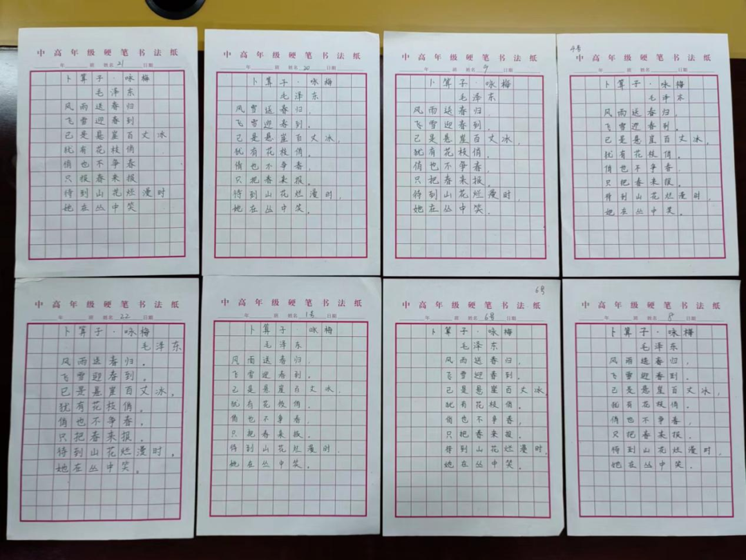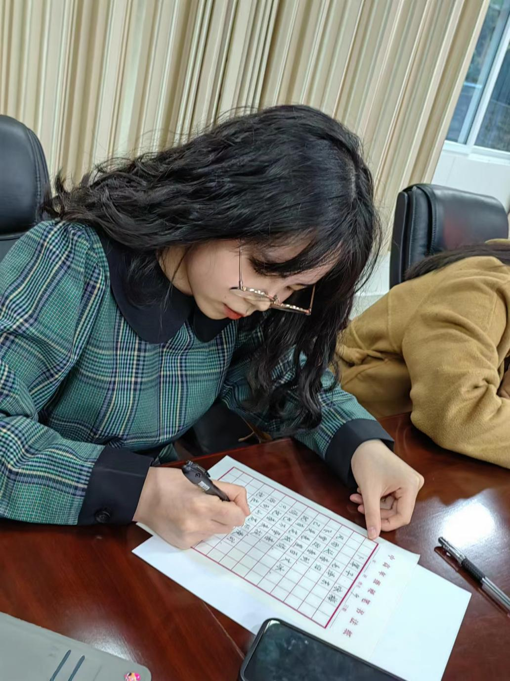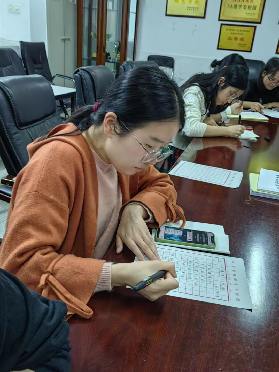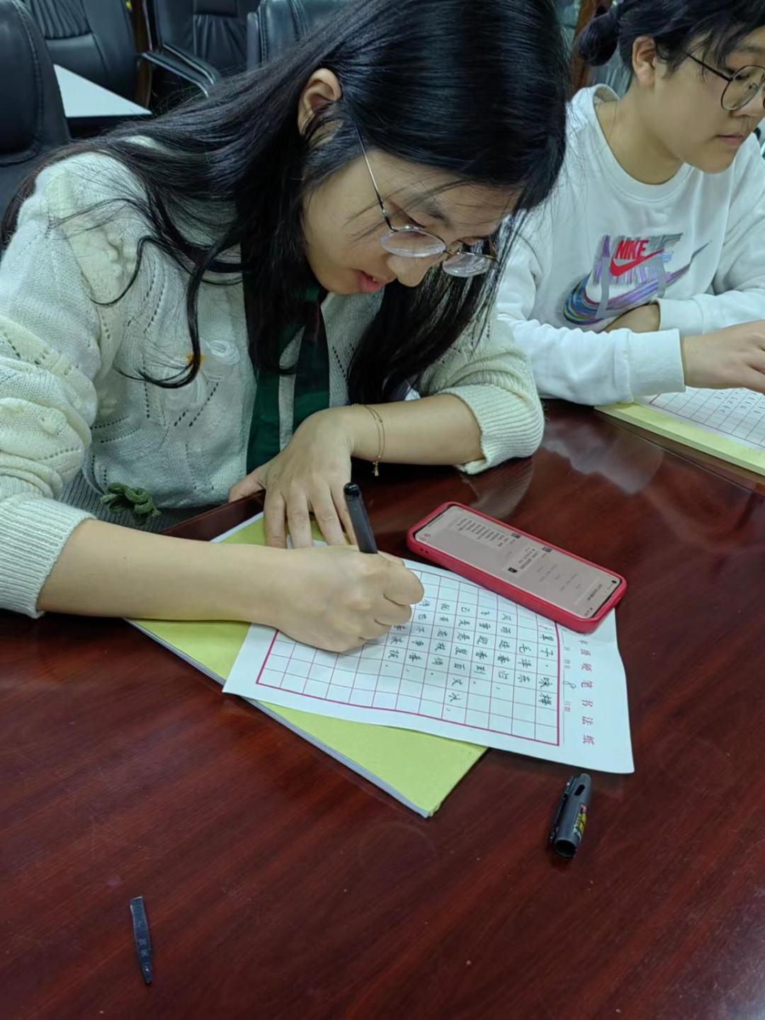 比赛结束后,评委老师们统一评分标准、尺度,仔细审阅每位老师的作品,从字体结构、章法布局、完整、美观、艺术性等几个方面用心琢磨,公正、公平地评选优秀作品。