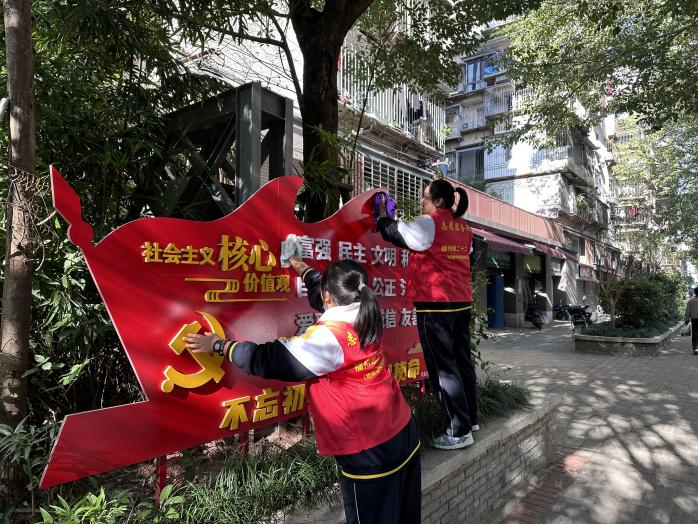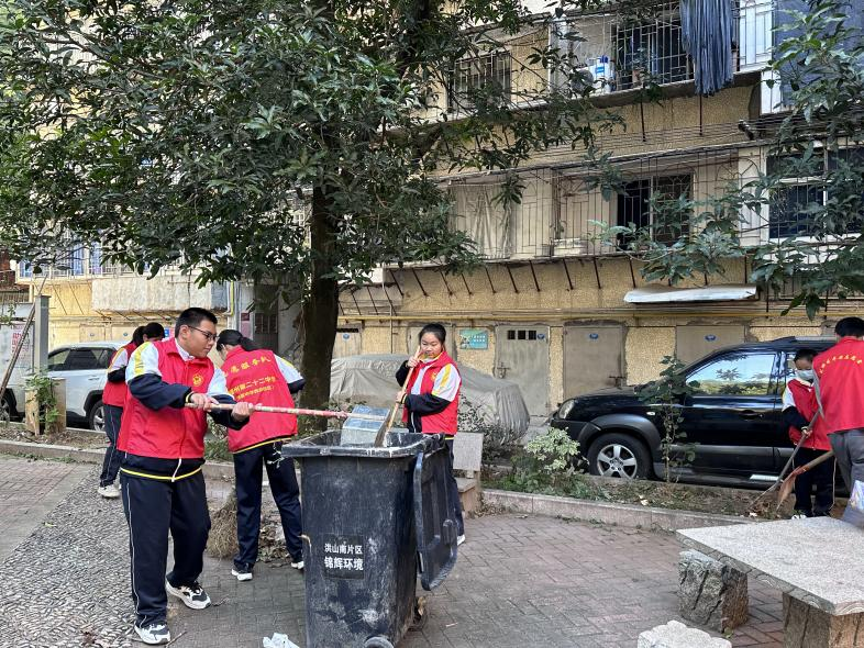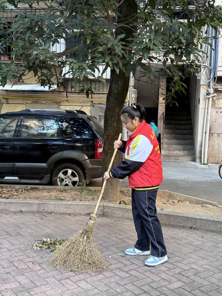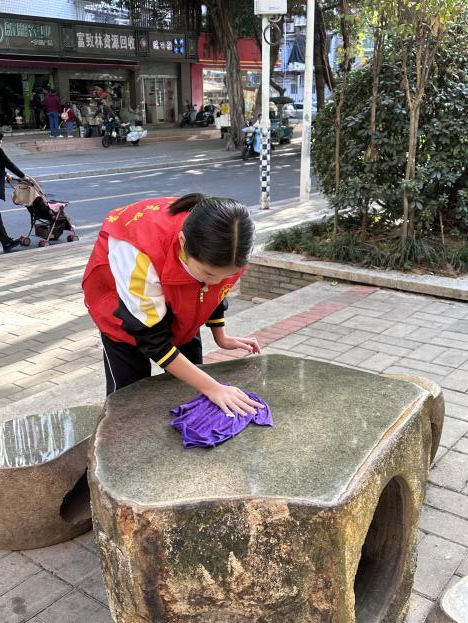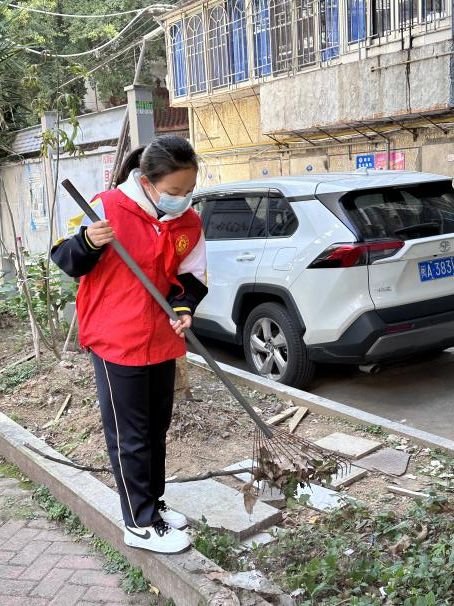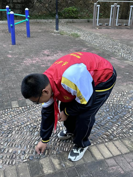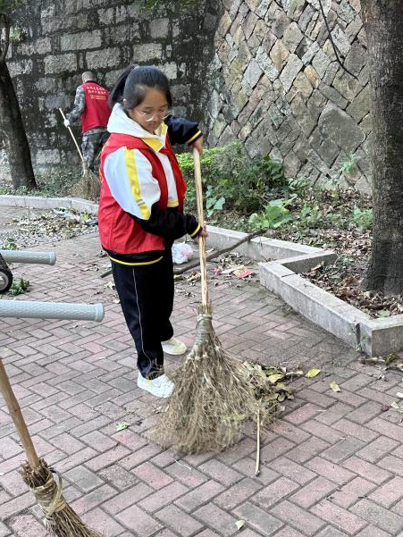 随后,同学们走进了社区,伸出手将一张张广告撕下,弯下腰将一个个烟头捡起,拿起扫把带走一片片落叶……同学们所过之处垃圾一个不留。