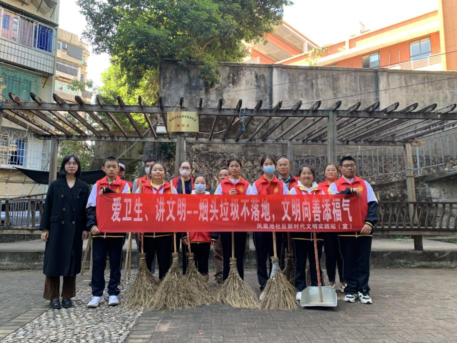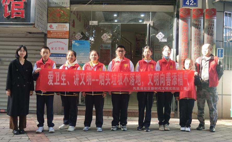 2023年11月19日上午,我校初一(2)班的同学们为贯彻“服务社会”的宗旨,来到了文林路志愿服务中心开展以“爱卫生、讲文明——烟头垃圾不落地,文明向善添福气”为主题的志愿服务活动。
