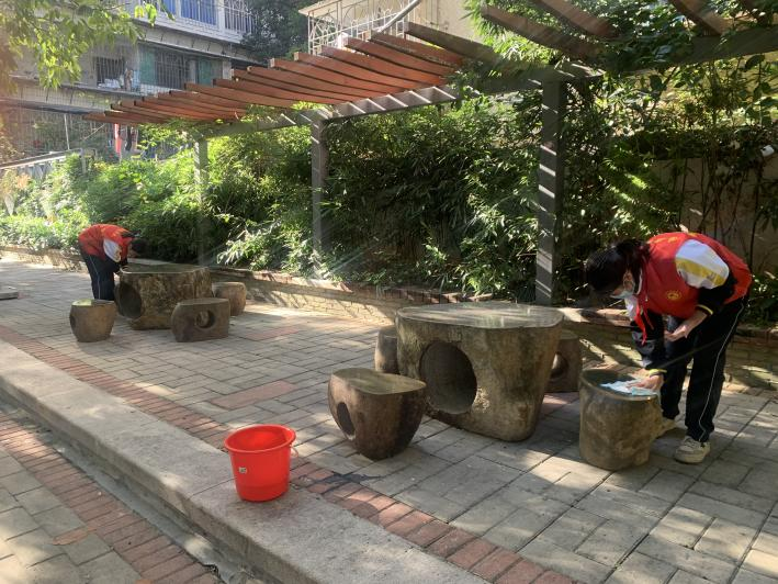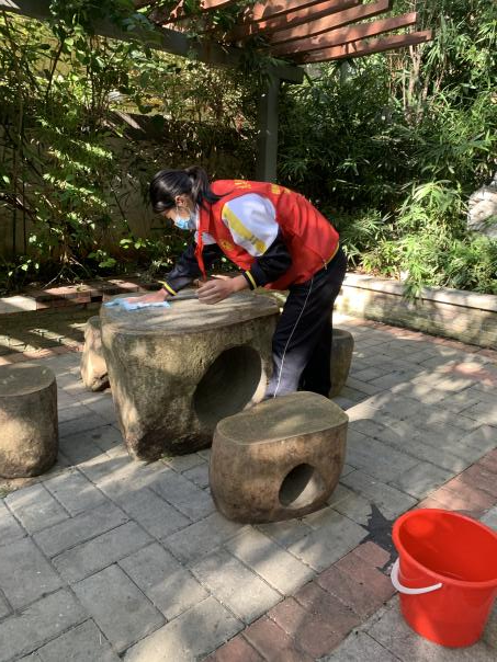 大家一人一块抹布,细心地擦洗了核心价值观以及社区中的每块桌子,动力满满的同学们,不一会儿就让所有东西焕然一新,一张张桌子、椅子由原来的满是灰尘,变得一尘不染。