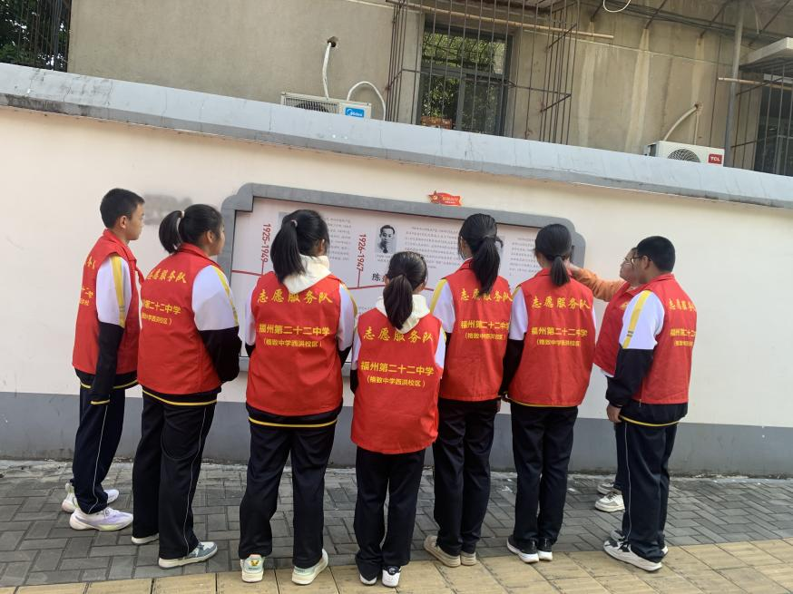 将已经落了灰的健身器材擦拭干净过后,同学们又来到了文林英雄路。看着一张张烈士的照片,同学们仿佛看见了那段灰暗的时光,看到了那一段段悲壮的历史,每一个文字都无比沉重,一段短短的文字介绍,不足以表现他们的伟大。
