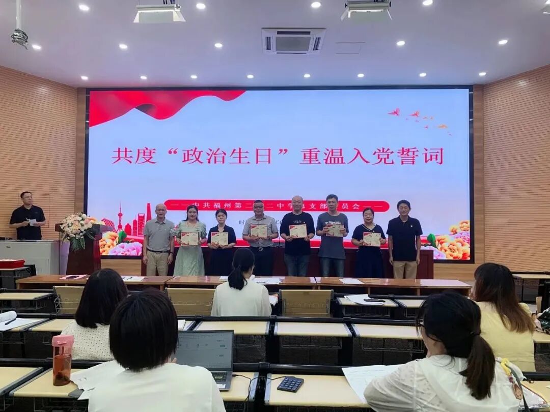 接着,参会党员同“寿星们”一起,佩戴党员徽章,在党总支陈琛书记的带领下重温入党誓词:“我志愿加入中国共产党,拥护党的纲领,遵守党的章程,履行党员义务,执行党的决定......”短短的12句入党誓词,字字铿锵有力,以饱满的激情和声音表达了作为共产党员的自豪感与使命感,展示了大家永远跟党走的信心和决心。