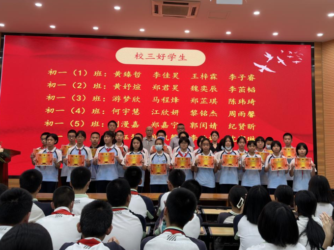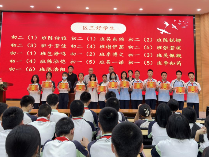 团委书记陈晓霞老师宣读了获得市、区、校级荣誉的班集体和学生名单,校领导为同学们进行表彰。希望他们能够再接再厉,继续为集体、为自己增光添彩。