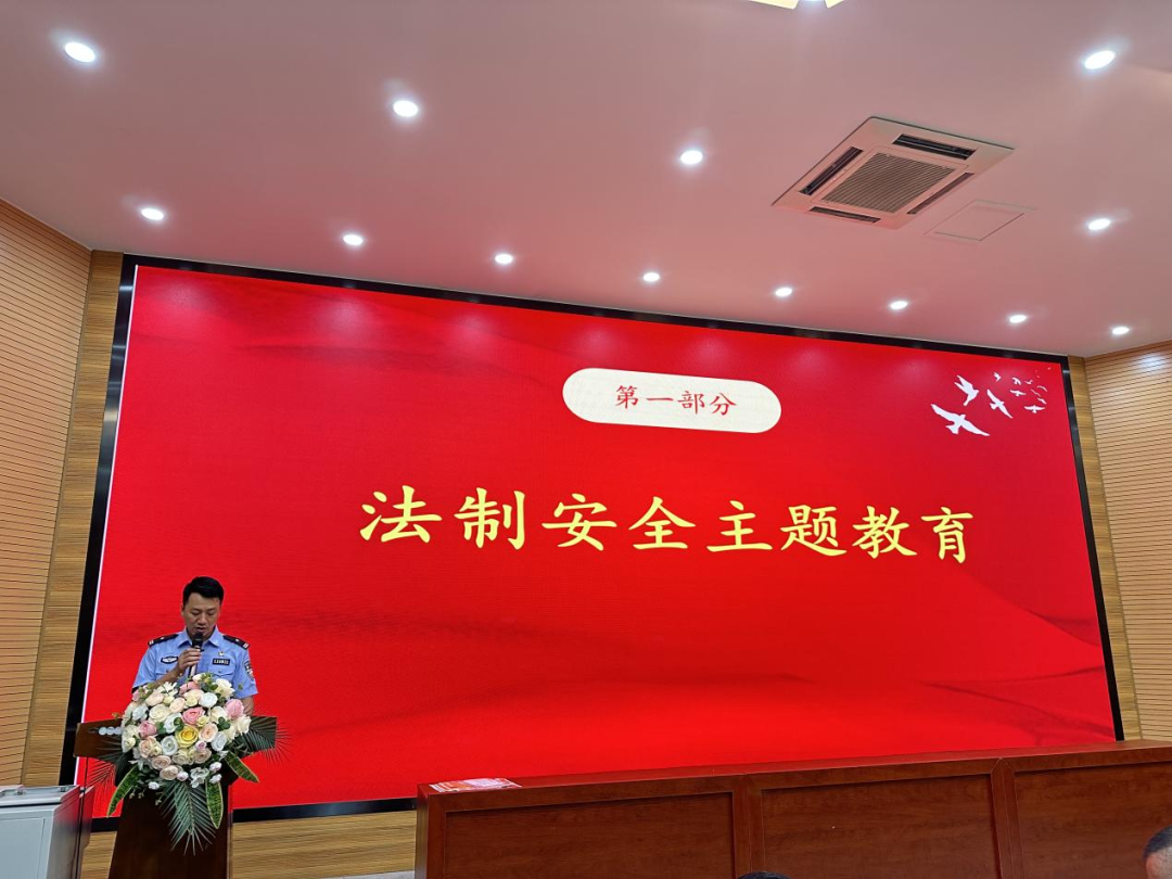 法治副校长、洪山派出所副所长余挺警官对大家进行了暑假安全教育。从防溺水安全、网络安全、饮食安全、人身安全、预防电信诈骗等多个方面对同学们进行教育,希望同学们能够切实强化安全意识,提高保护防范能力,度过一个安全快乐的暑假。