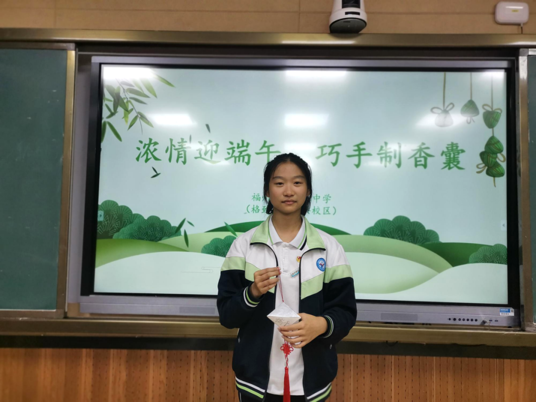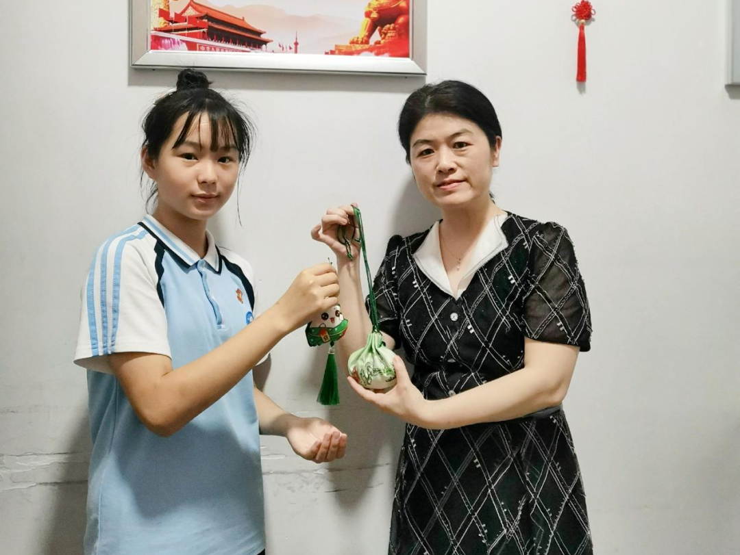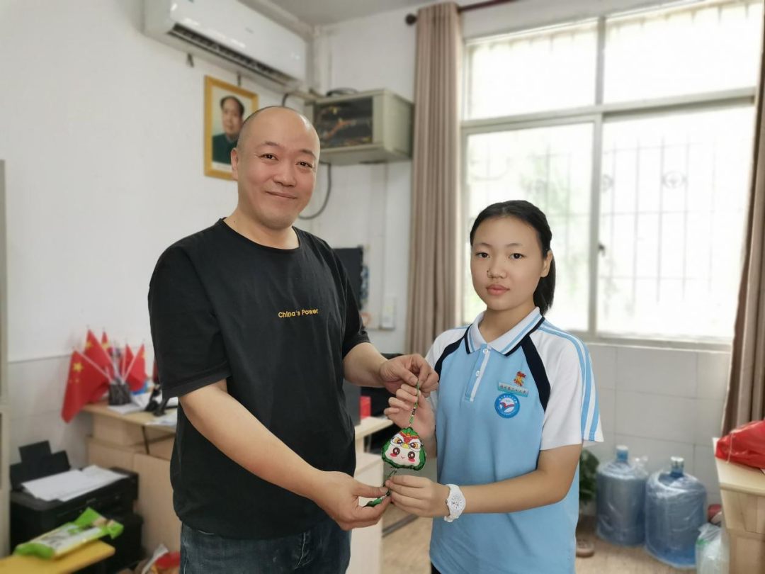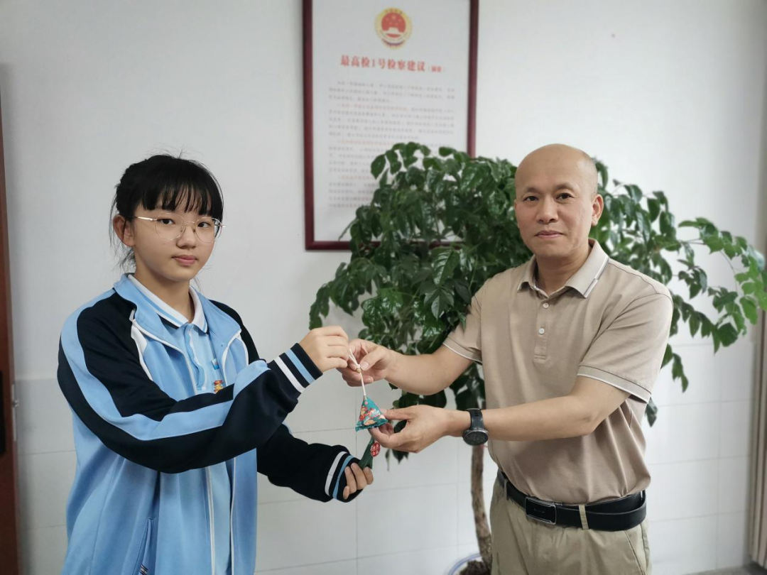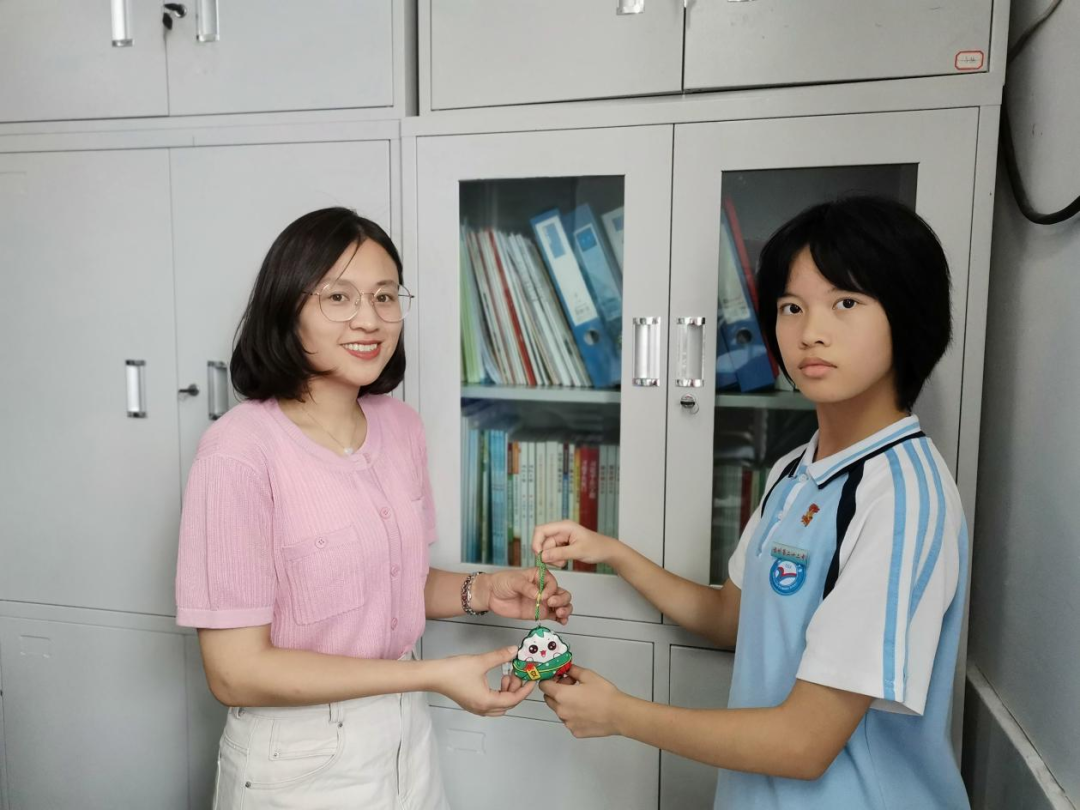 赛后,同学们亲手将香囊送给了老师们,香囊承载着同学们对老师的感谢和祝福,希望精致的香囊和清新的艾草能为老师们带去一份好心情。