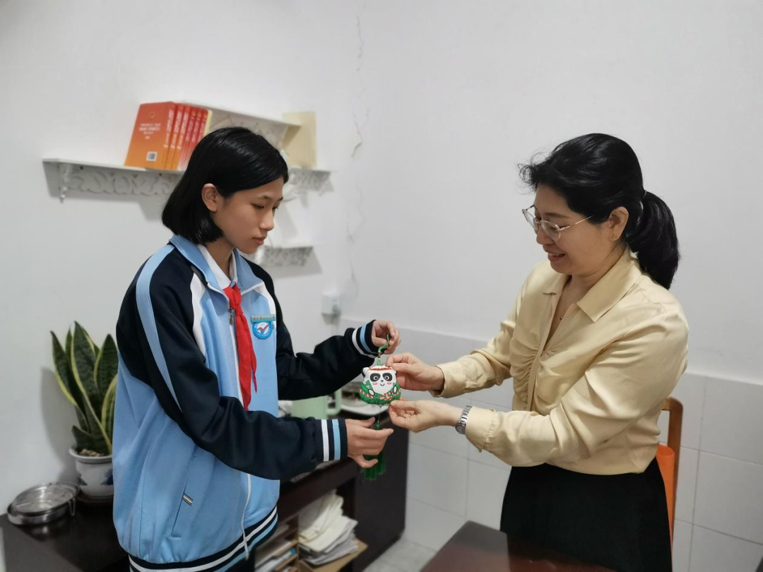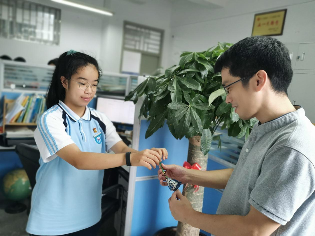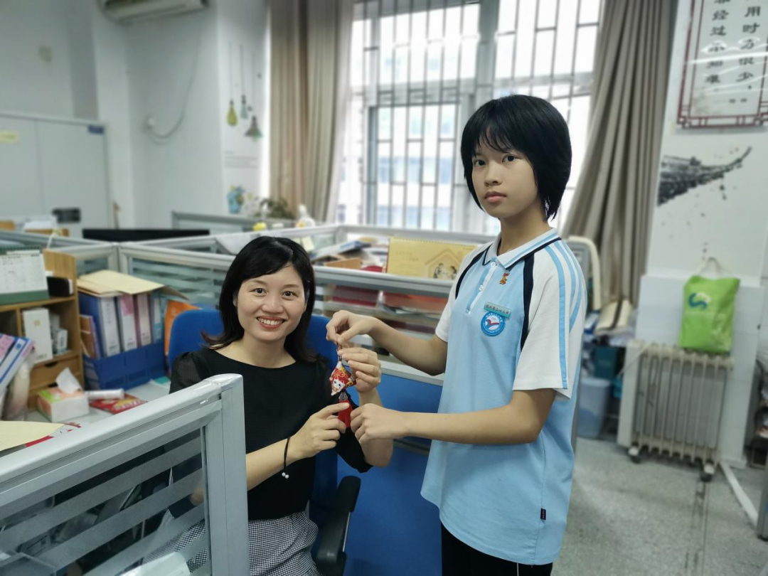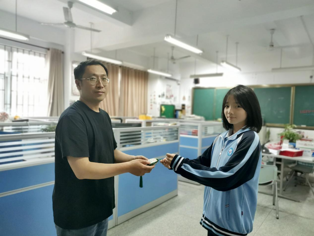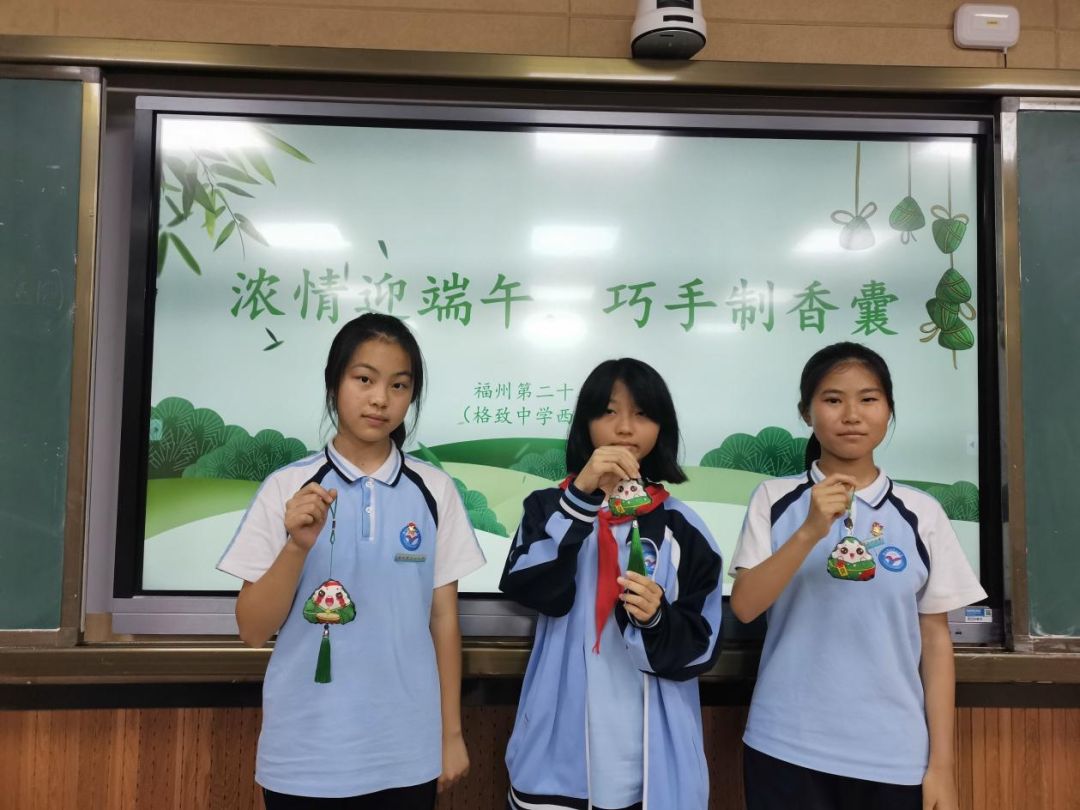 赛后,同学们亲手将香囊送给了老师们,香囊承载着同学们对老师的感谢和祝福,希望精致的香囊和清新的艾草能为老师们带去一份好心情。